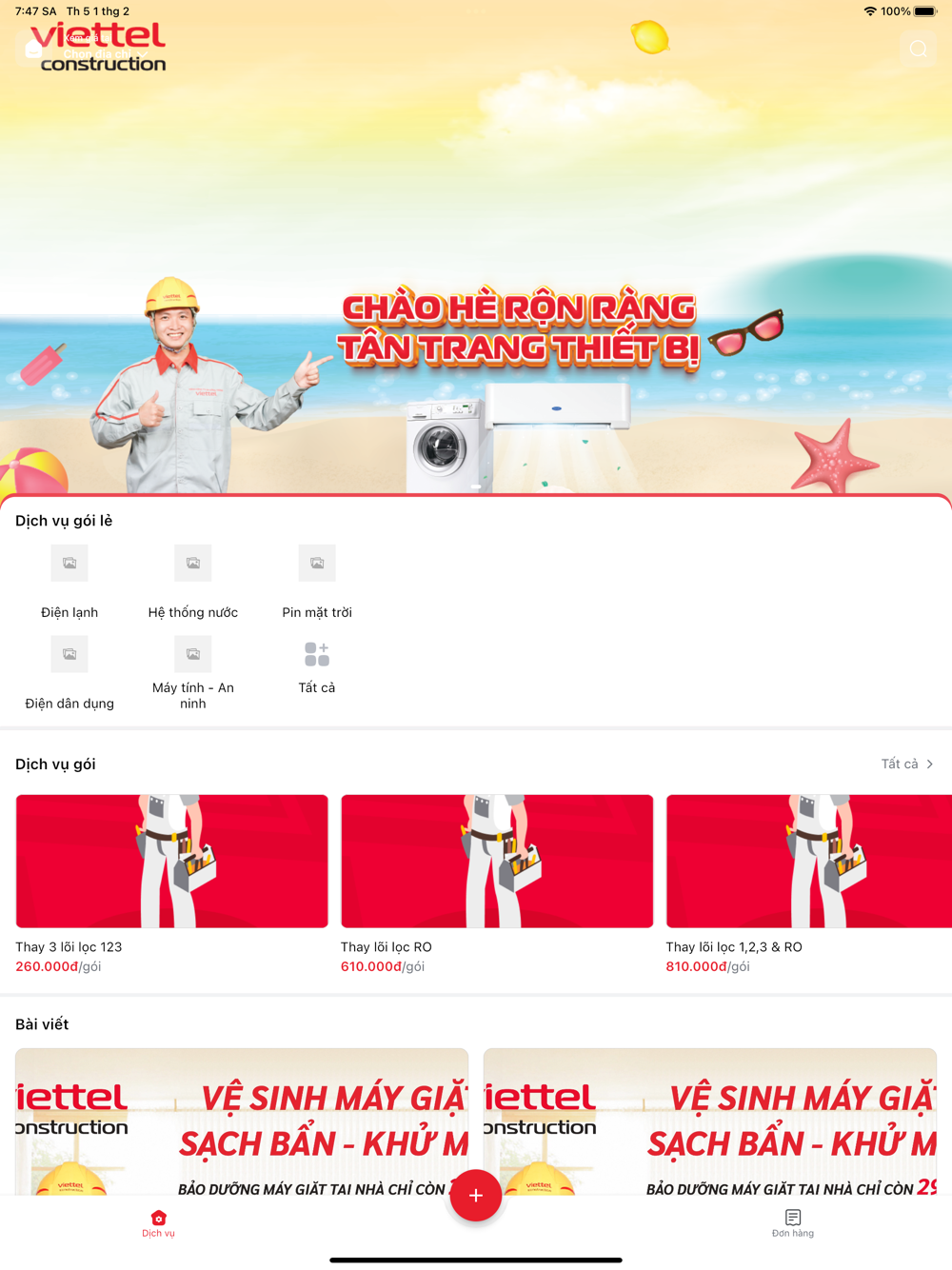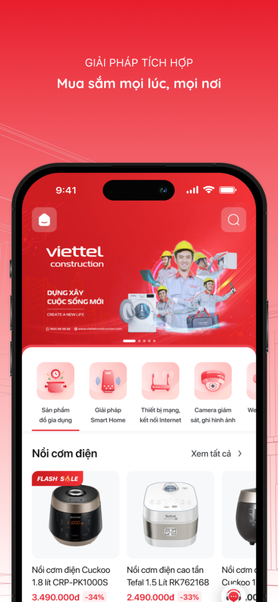 AIO - Giúp khách hàng có thể trải nghiệm tất cả các sản phẩm của Viettel Construction trên cùng 1 ứng dụng. Chỉ bằng 1 nút chạm khách hàng có thể dễ dàng trải nghiệm, tìm kiếm, chia sẻ thông tin và mua sắm online các sản phẩm điện máy như: Tivi, tủ lạnh, máy lạnh, đồ gia dụng, laptop,... và các dịch vụ chăm sóc các thiệt bị điện trong gia đình với nhiều chính sách khuyến mãi hấp dẫn, giao hàng online tận tay khách hàng.