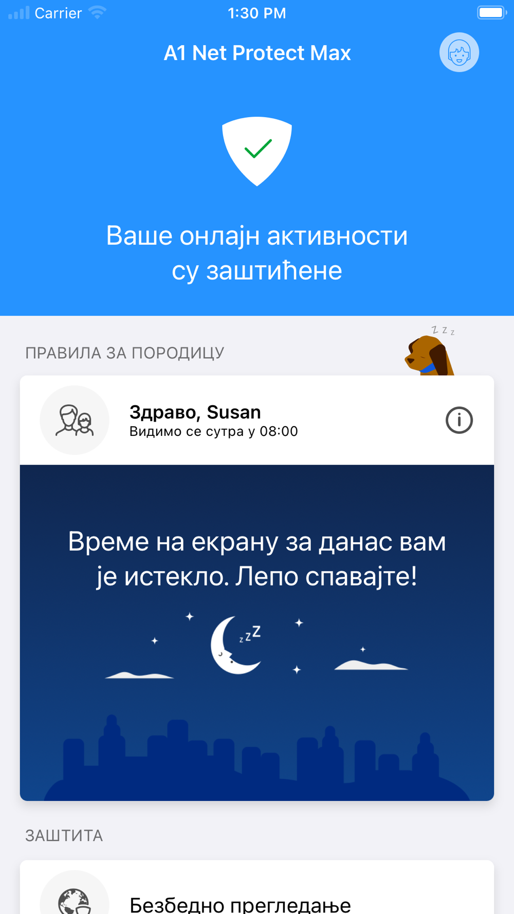 A1 Net Protect Max sadrži sve što ti je potrebno da zaštitiš svoju decu dok su na internetu: zaštita prilikom pretraživanja, filter sadržaja, sigurna pretraga, ograničenja vremena provedenog na internetu.