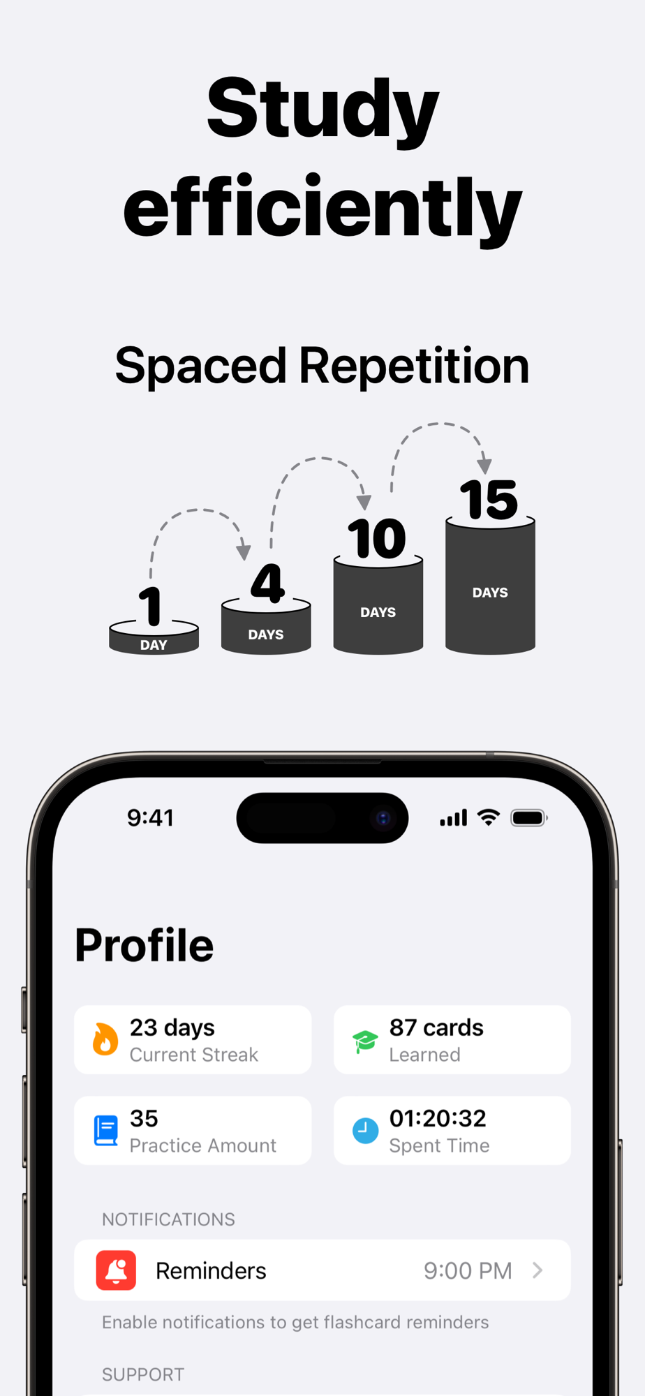 Vocabify is the best flashcard app to help you study. Based on the Forgetting Curve, using the SM2 algorithm will repeatedly remind you to review.
