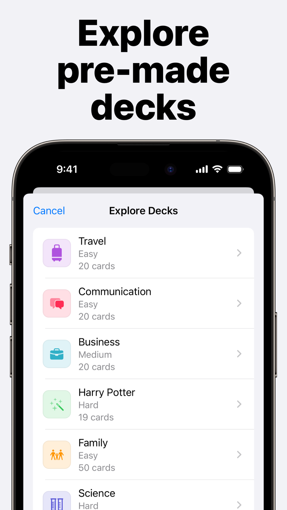 Your data will be backed up automatically to your iCloud account. That means all your flashcards are safe, up-to-date, and available on all your devices.