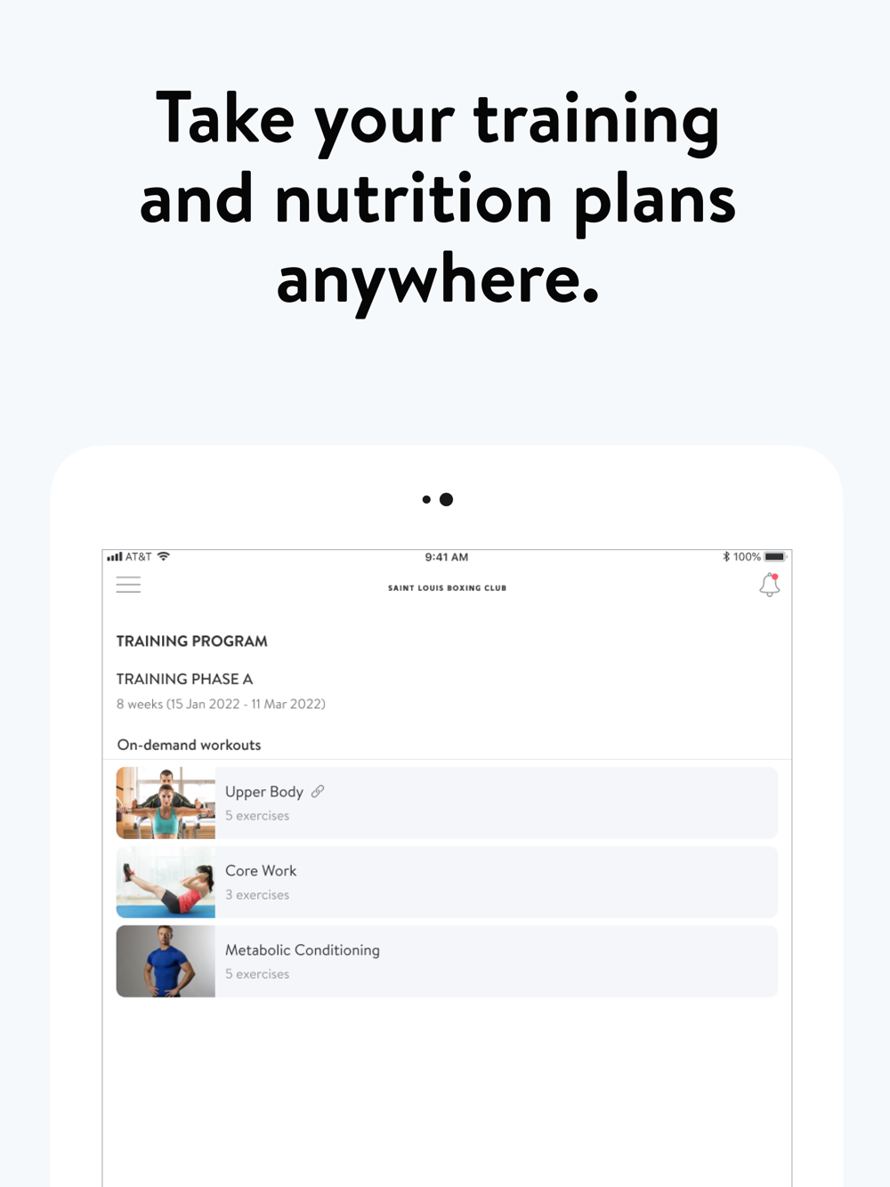 With the St Louis Boxing Club Training App, you will have access to workout programs designed specifically to help you reach your fitness and health goals! You can follow & track your workouts, your nutrition, your lifestyle habits, measurements and results–all with the help of your coach.