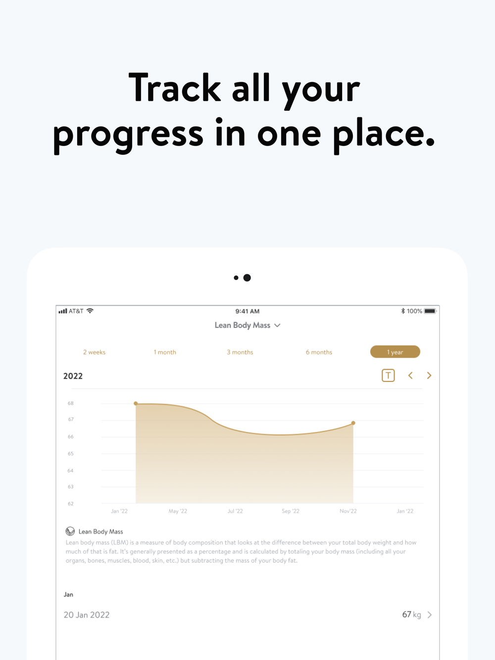- Track body measurements and take progress photos