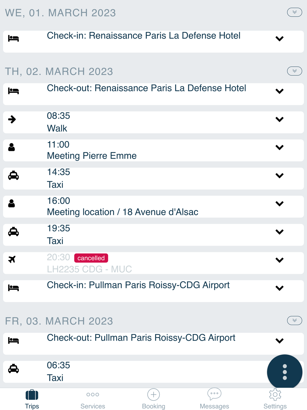 • mobiler Reiseplan mit allen Details zu gebuchten Flüge, Bahnreisen, Hotels und Mietwagen