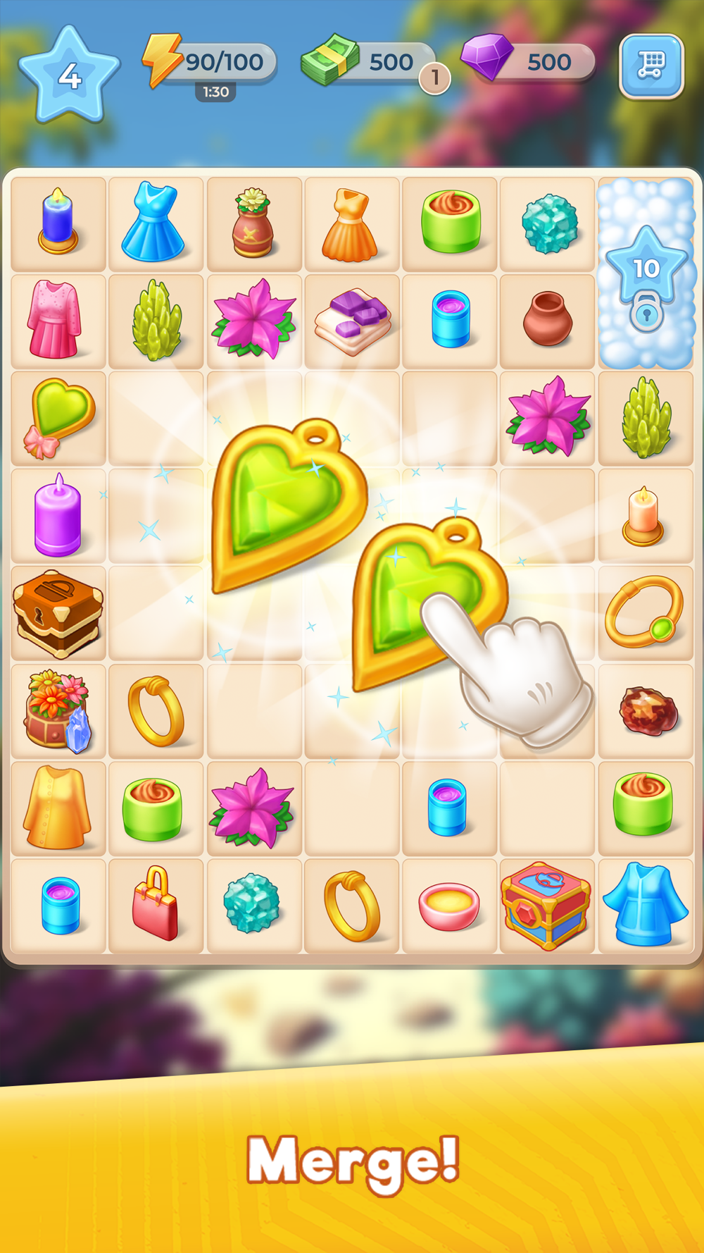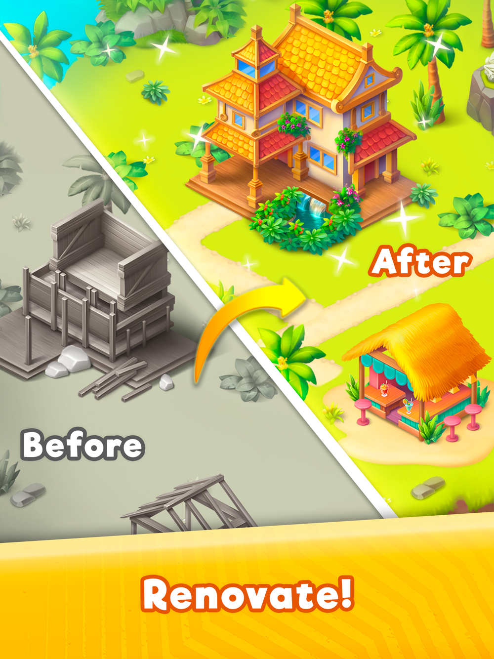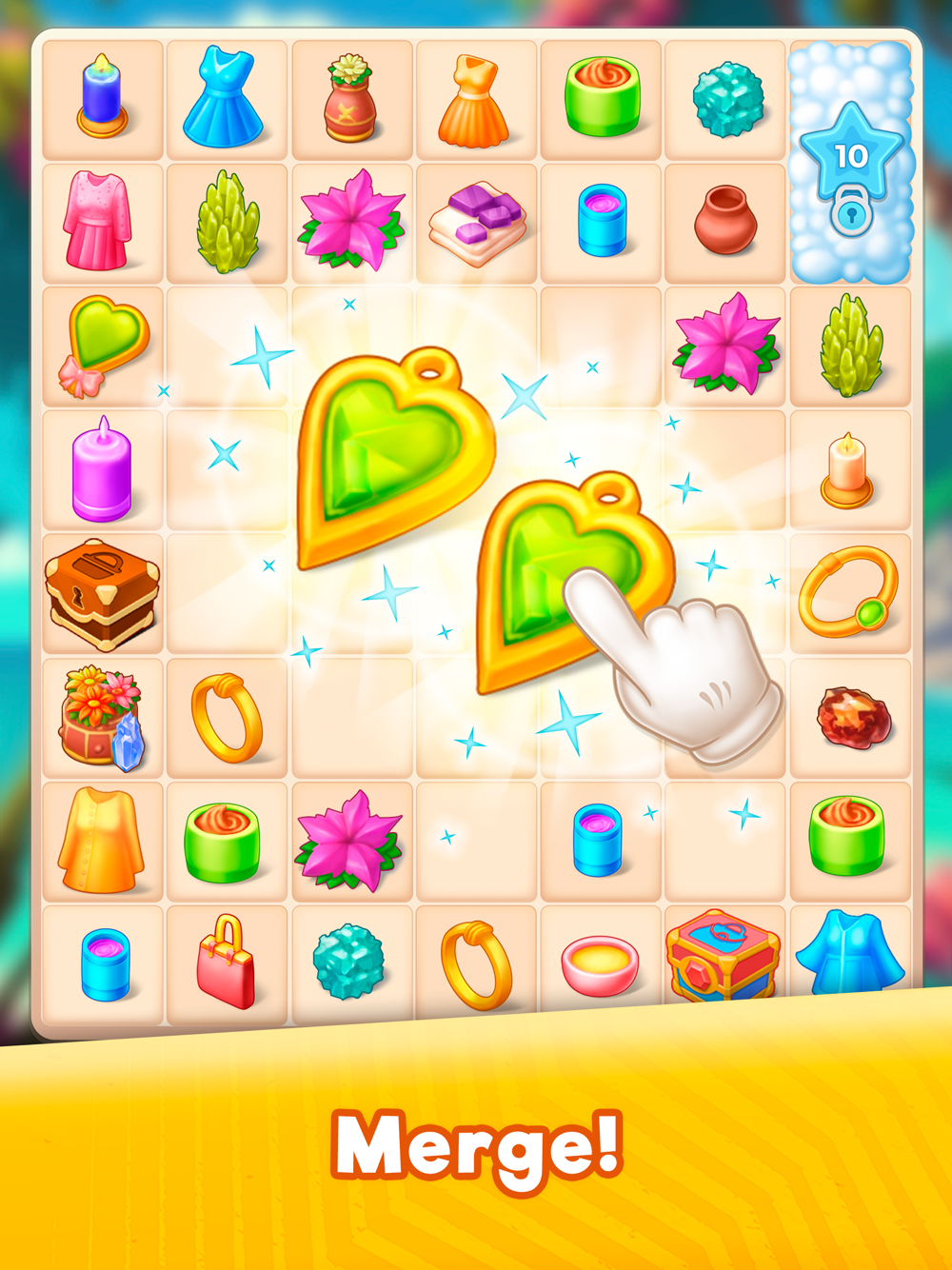 Relaxing gameplay. Just merge two items and then build the Spa Resort. It couldn’t be any more simple