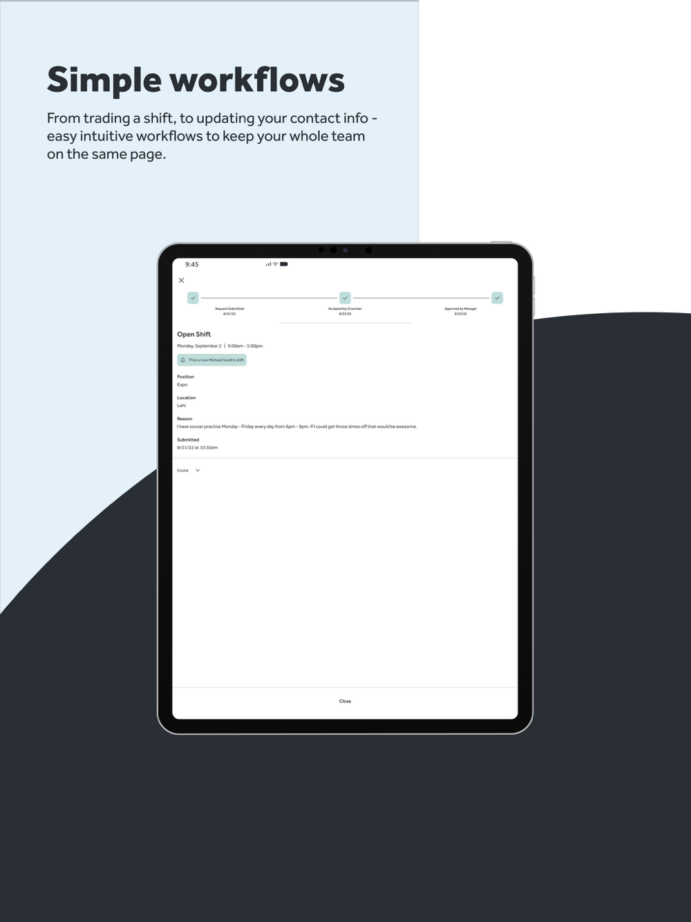 Never miss an opportunity to earn extra income by picking up open shifts. Crisp Teams allows you to browse and request available shifts, empowering you to take control of your schedule and maximize your earning potential.