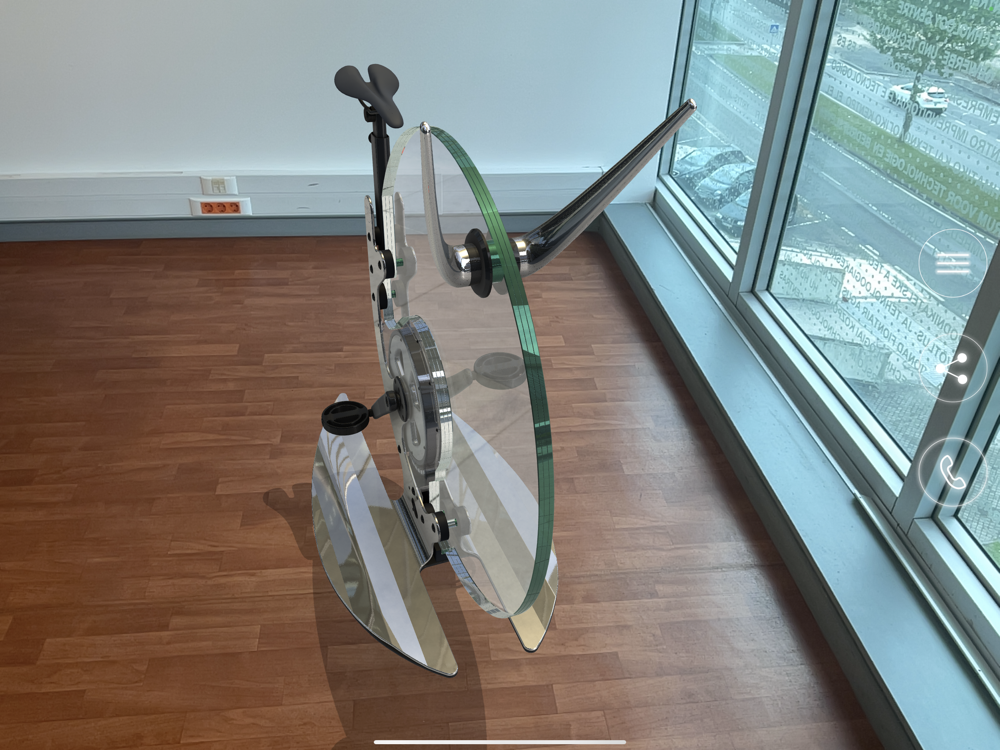 Experience the exceptional design and craftsmanship of the Ciclotte Teckell, an exercise bike that combines beauty and functionality. Admire the bike's exquisite details, elegant lines and its unique crystal glass frame in - your preferred - rooms and places, and enjoy it with augmented reality.