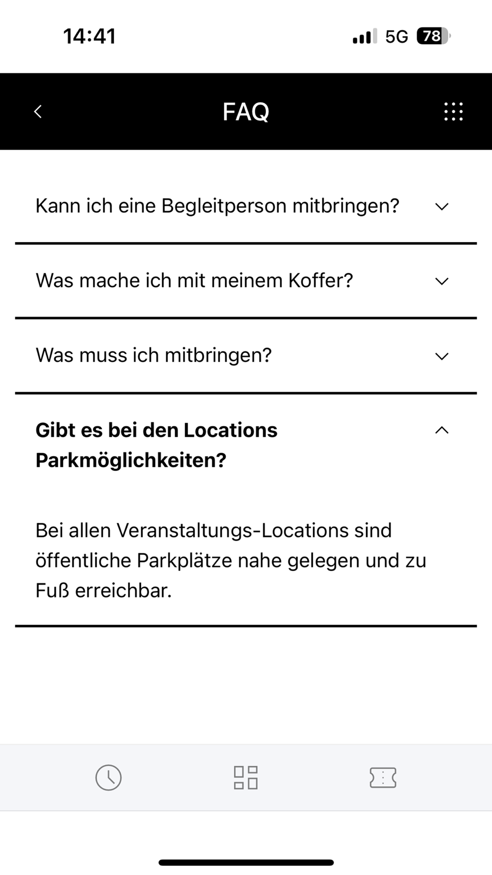 • Bei der Einlasskontrolle einfach ihr elektronisches Ticket vorzeigen