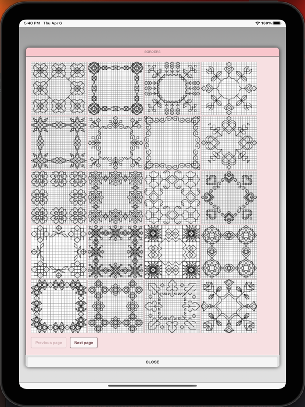 You can also select from over 200 stamps, inserts and borders to apply to your Blackwork pattern.