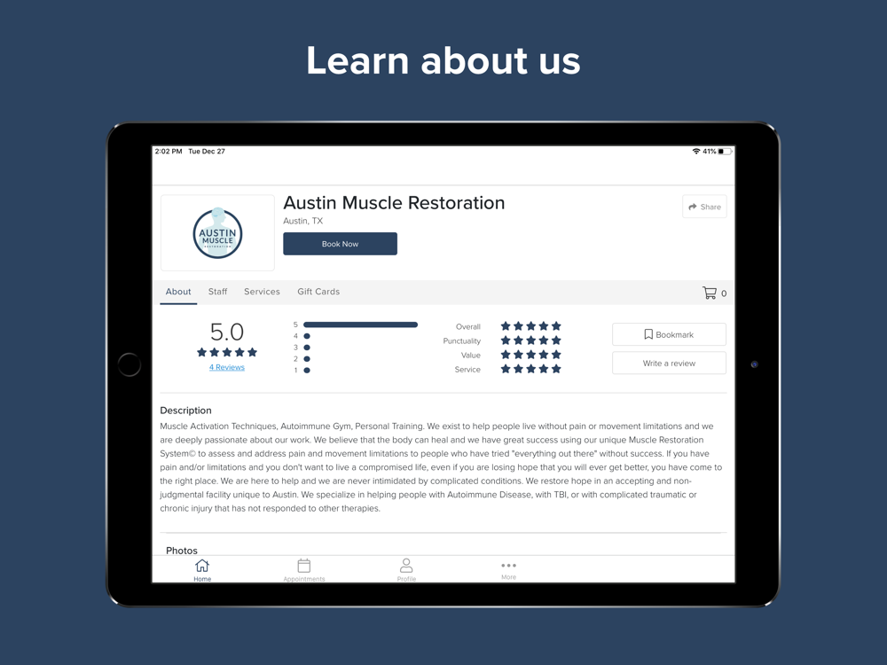 With the Austin Muscle Restoration mobile app, booking services in the Austin, TX area is easier than ever!