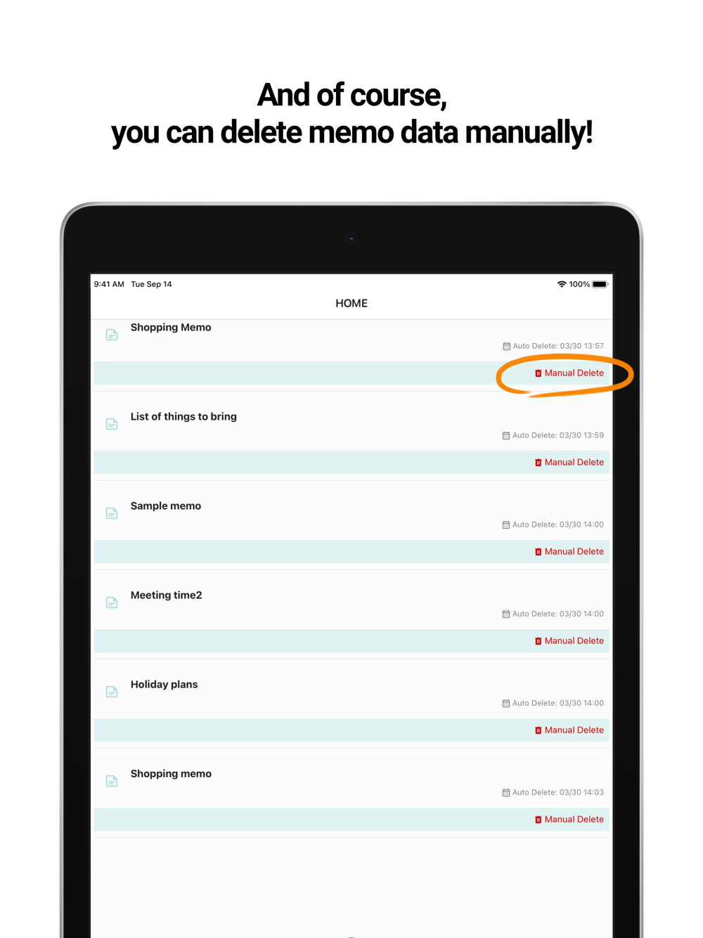ADmemo automatically deletes the memo data after 3 days have passed since you created the memo.