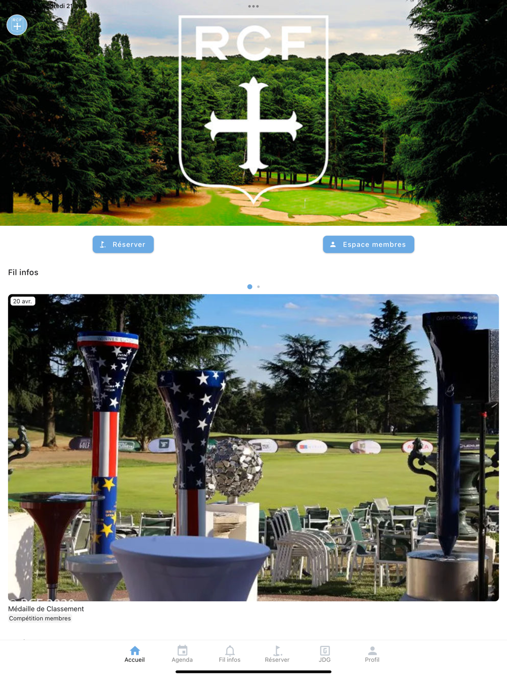 - Découvrez les actualités de votre club (Club-House, proshop, compétitions, etc.)