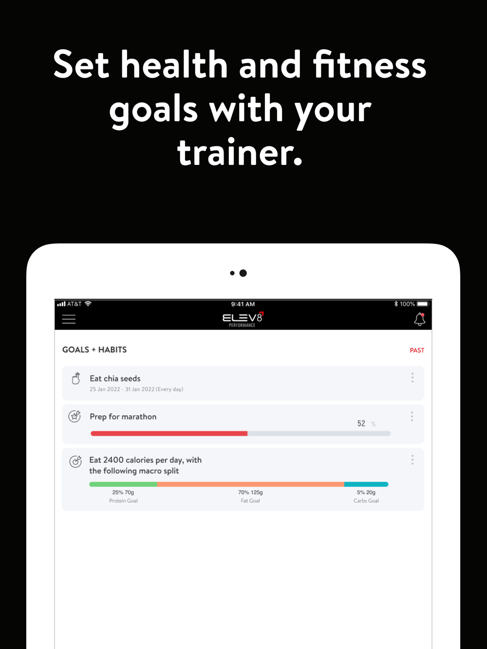 With the Elev8 Performance App, you will have access to workout programs designed specifically to help you reach your fitness and health goals! You can follow & track your workouts, your nutrition, your lifestyle habits, measurements and results–all with the help of your coach.