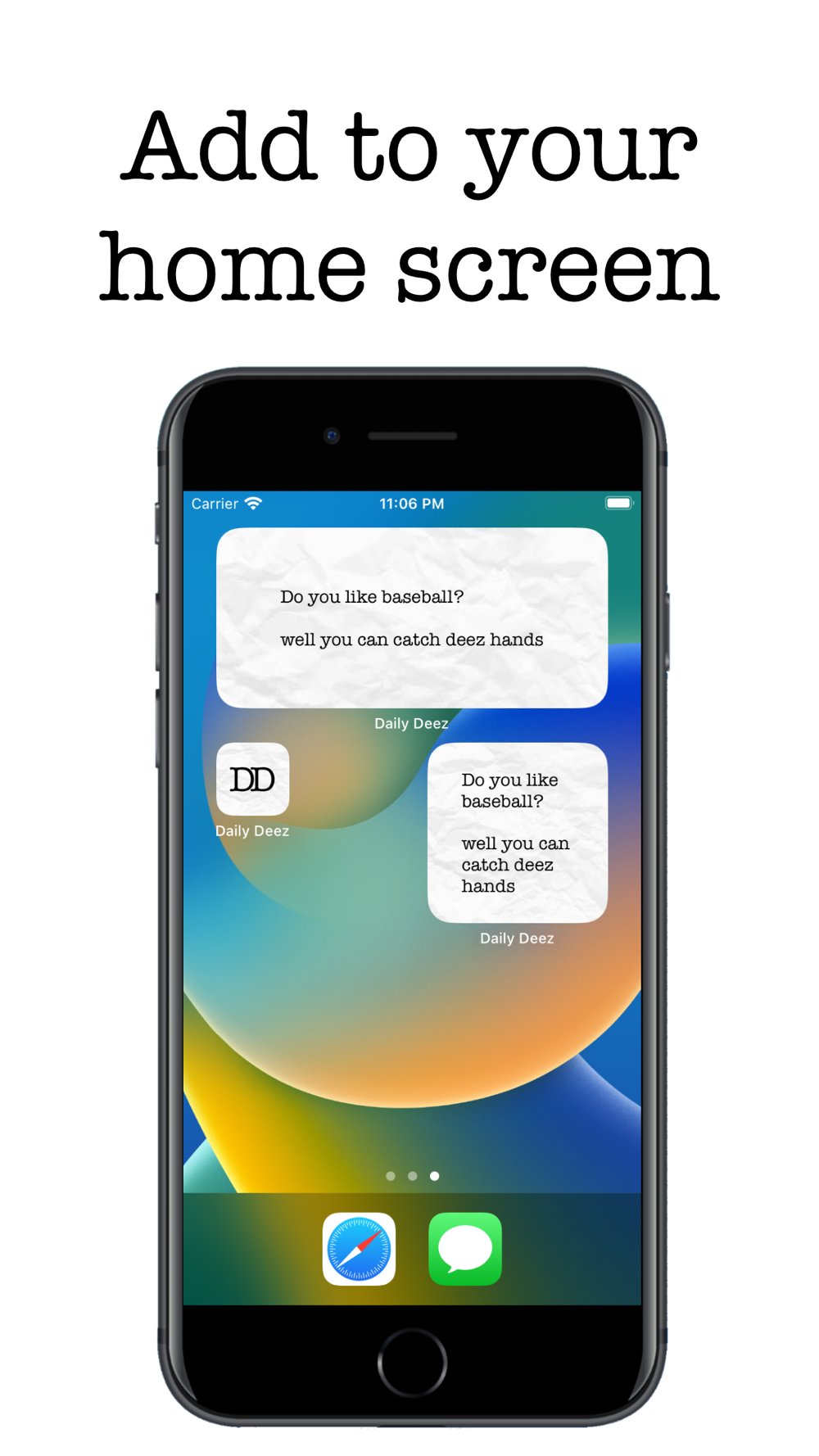 With 3 different widget sizes to choose from, and a new deez joke every single day, whats not to like.