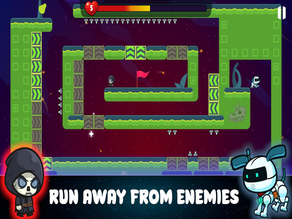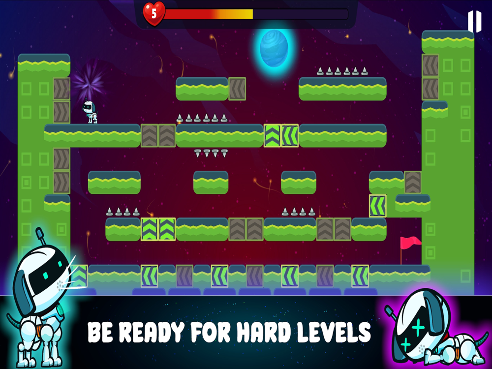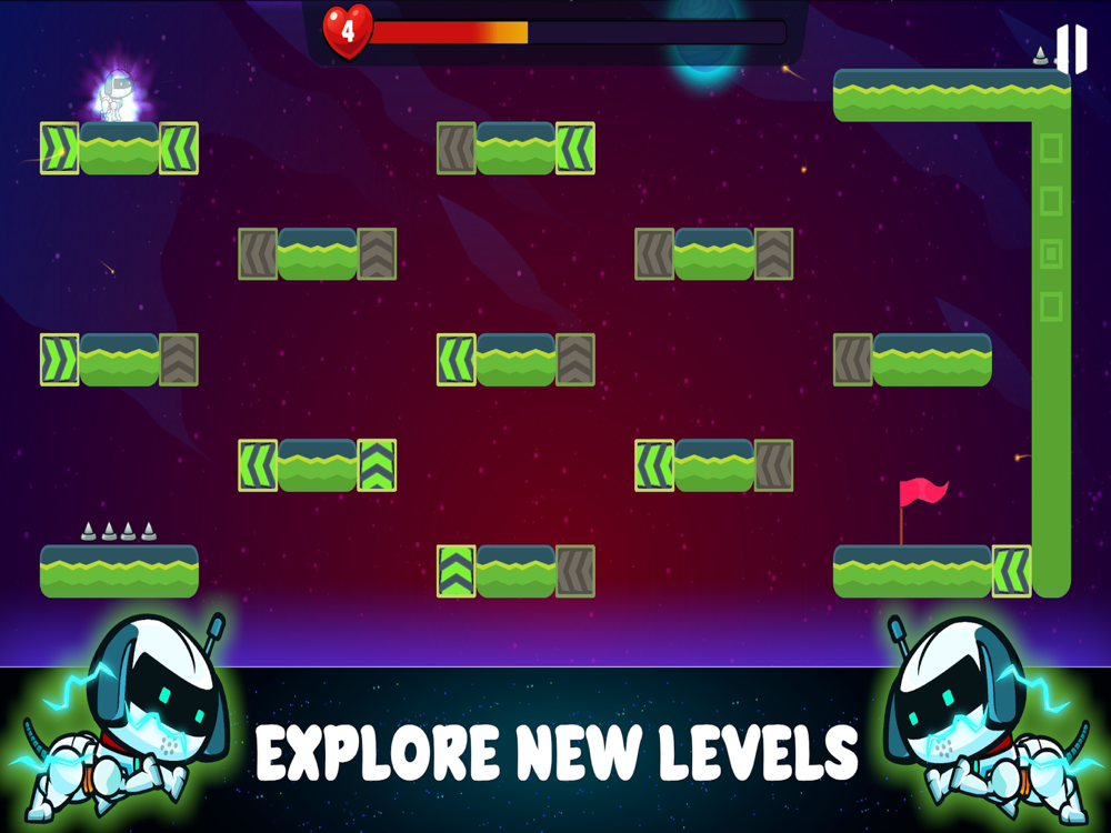 In the game's normal mode, players must complete the 20 levels sequentially. In each level, players will encounter many challenging obstacles and reach flags at the end of the level. Completing each level is necessary for players to access the next levels.