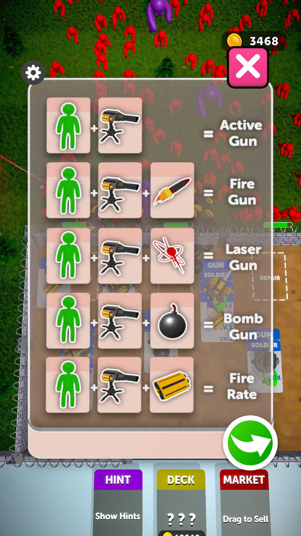 Merge and combine cards to upgrade your army.