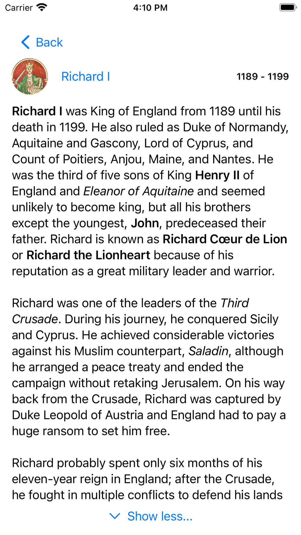 Whether you're a history buff or just curious about the kings and queens who have ruled England over the centuries, British Reigns is the app for you.