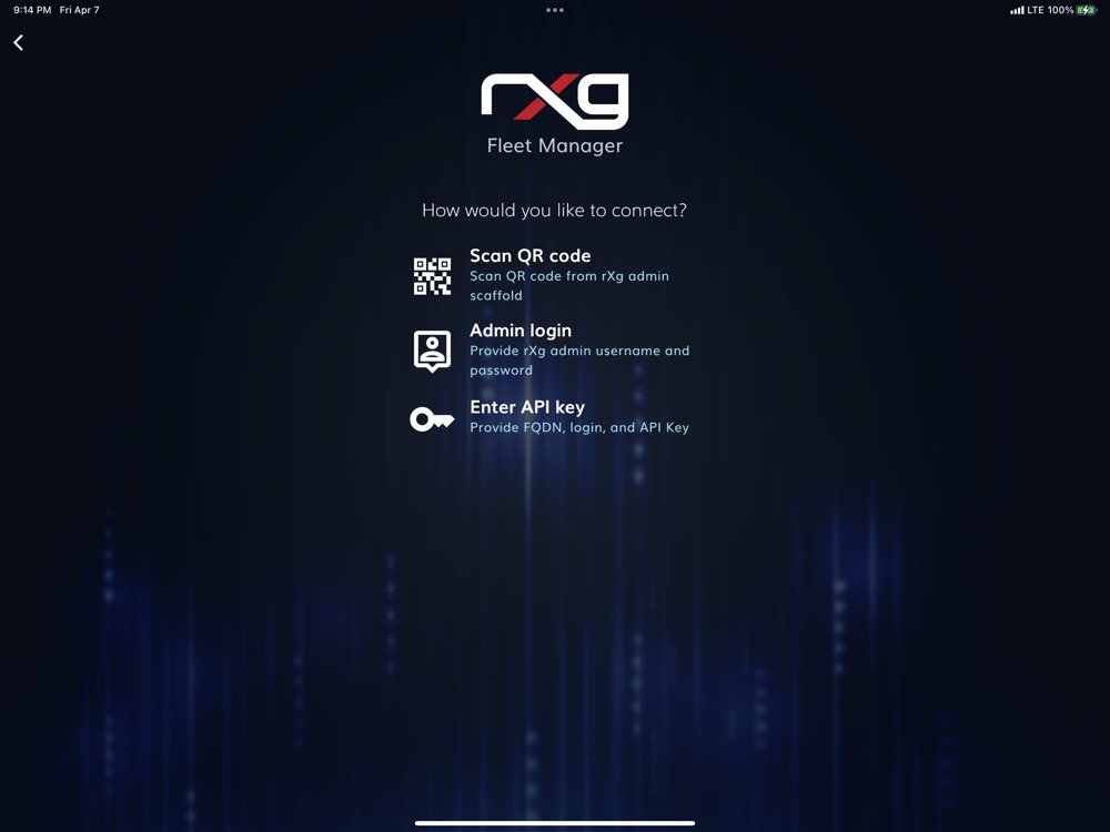 This app is a simplified interface for viewing the RG Nets revenue eXtraction gateway (rXg) Fleet Manager. The goal of this app is to allow the operator to view the status of all rXg nodes within a fleet. The app uses the rXg RESTful API. The rXg must be deployed on a publicly accessible IP, associated with a public DNS record and configured with a valid SSL certified for this app to function. The account linked to the API key used as a login for this must be have read and write access for this app to be functional.