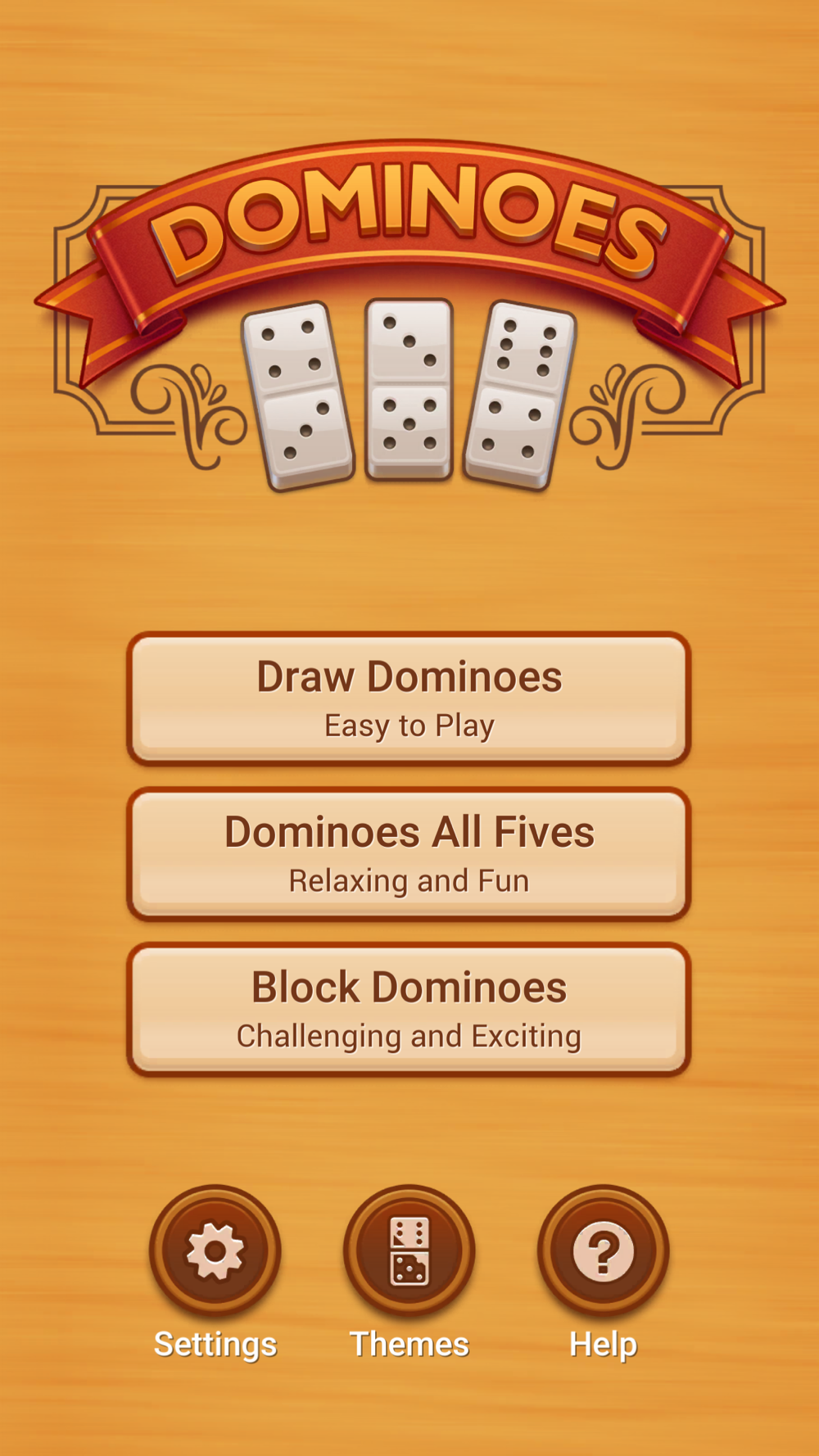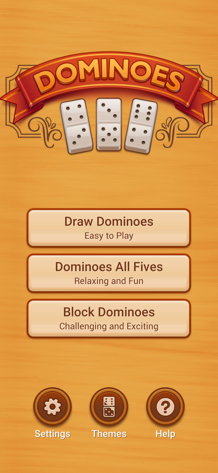 • Block Dominoes: basically the same as Draw Dominoes. The main difference is you have to pass your turn if you run out of options (whereas you can pick an extra domino from the boneyard in the previous mode).