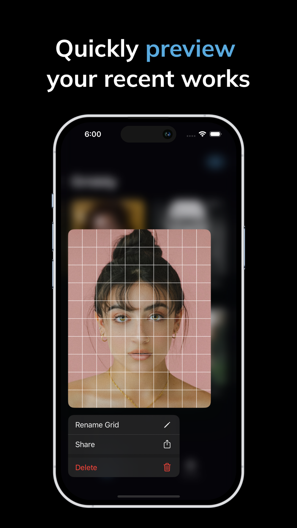 Griddy features a sleek and intuitive interface that makes it easy to create your own grids. You can adjust the line width, colour, and opacity to suit your needs, and even remove or fade in/out the background from your portrait image so you can focus entirely on the subject.