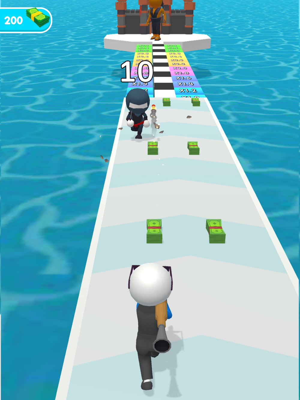 Players control a gun-wielding character as they run through a decision gates, choosing weapon and shooting down enemies along the way. With easy-to-learn controls and addictive gameplay, "Neon Gun Run" is perfect for quick gaming sessions and challenging high scores.