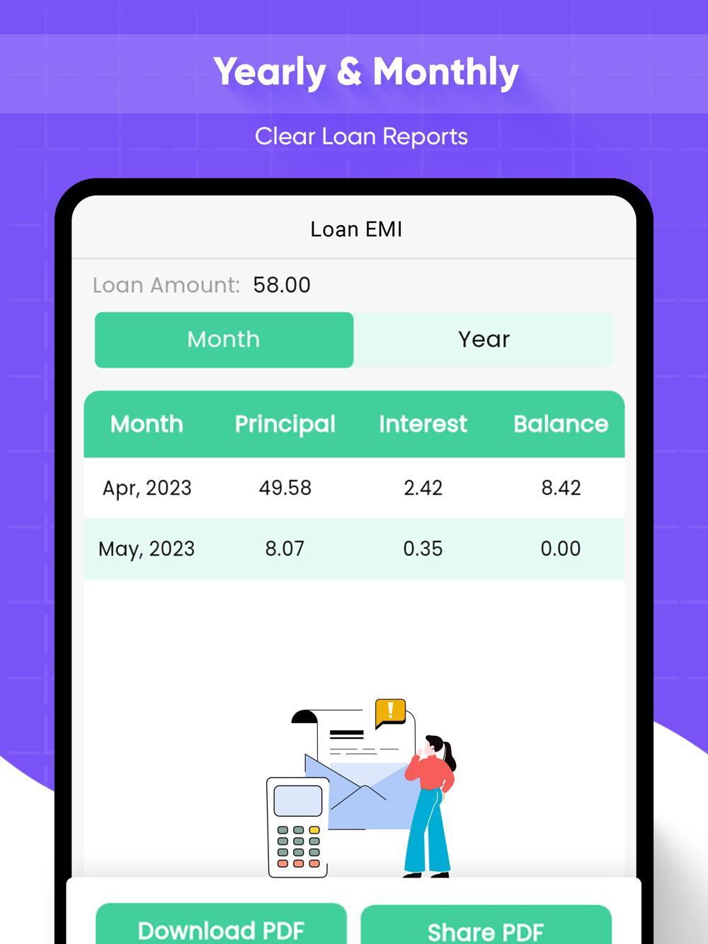 You can simply calculate loan payments calculate and instalments with the EMI Calculator for Loan app.It allows you to evaluate several loans and determine which flexible loan EMI best suits your requirements. With the help of an efficient EMI Calculator, you can quickly and easily begin your finance loan EMI adventure.
