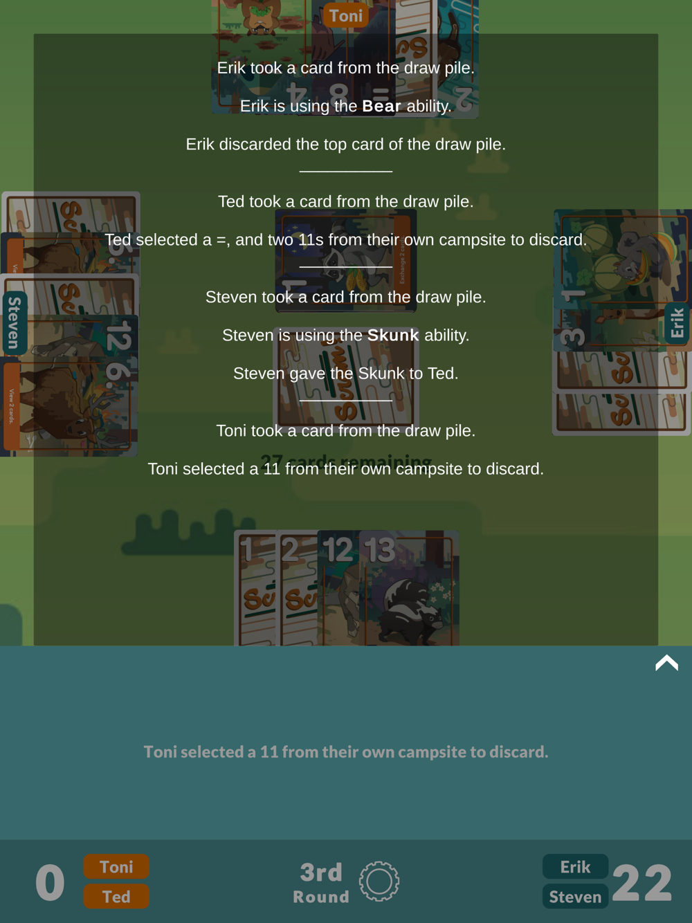 After hiking a local trail, you and your partner have returned to a campsite completely ransacked by pesky critters. Team up to clear your campground of critters before your neighbors. Scram! is a fun & fast game to play against an AI or online against your friends!