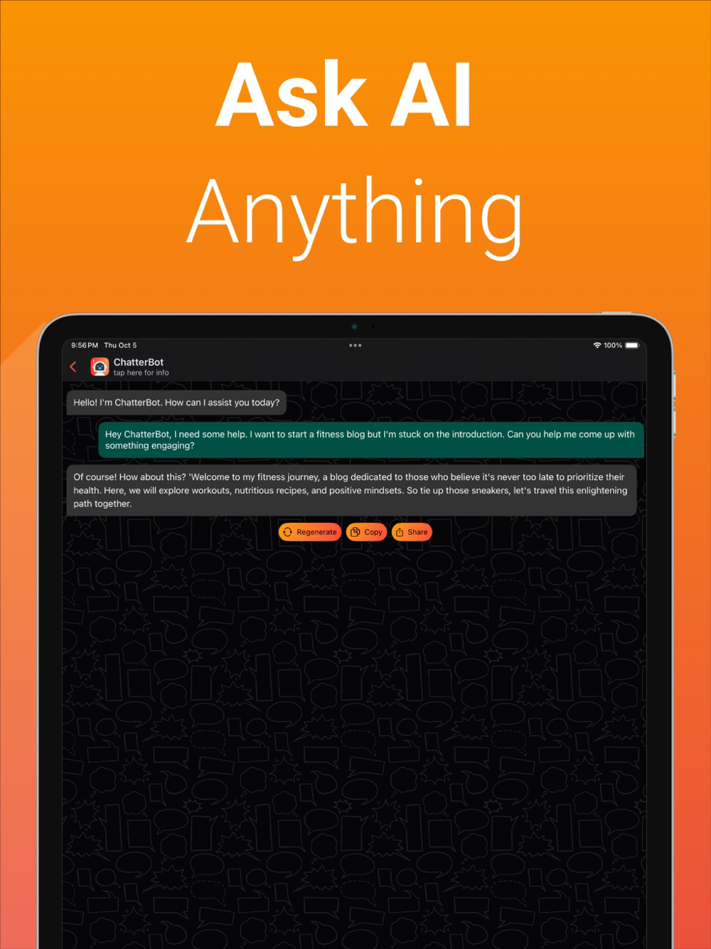Welcome to ChatterBot 2.4 — the ultimate AI-powered assistant for chatting, creating, and discovering. Now with AI-Powered Web Search, new expert assistants, and enhanced image analysis tools. Powered by ChatGPT and advanced AI tools, ChatterBot helps you write smarter, generate stunning images, analyze photos, and get real-time answers from the web.