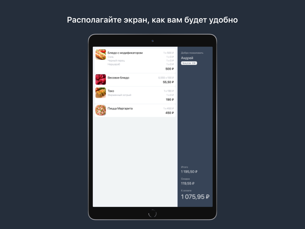 Customer display for Quick Resto terminal. Adapted for iOS 9 and 10.
