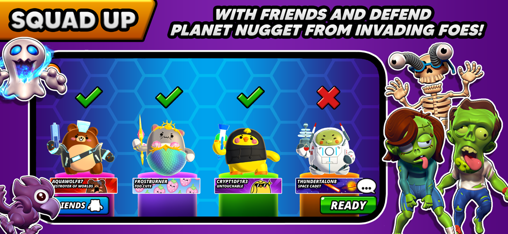 A colorful world of frantic friends has been thrown into chaos! The border between dimensions has weakened and mysterious portals are opening throughout the land! Pirates, zombies, and even Greek gods are appearing out of nowhere to wreak havoc on your cute colony! Dive headfirst into the cuddly carnage and challenge your friends in this fast-paced multiplayer melee where only the shrewdest sharpshooter will emerge victorious!