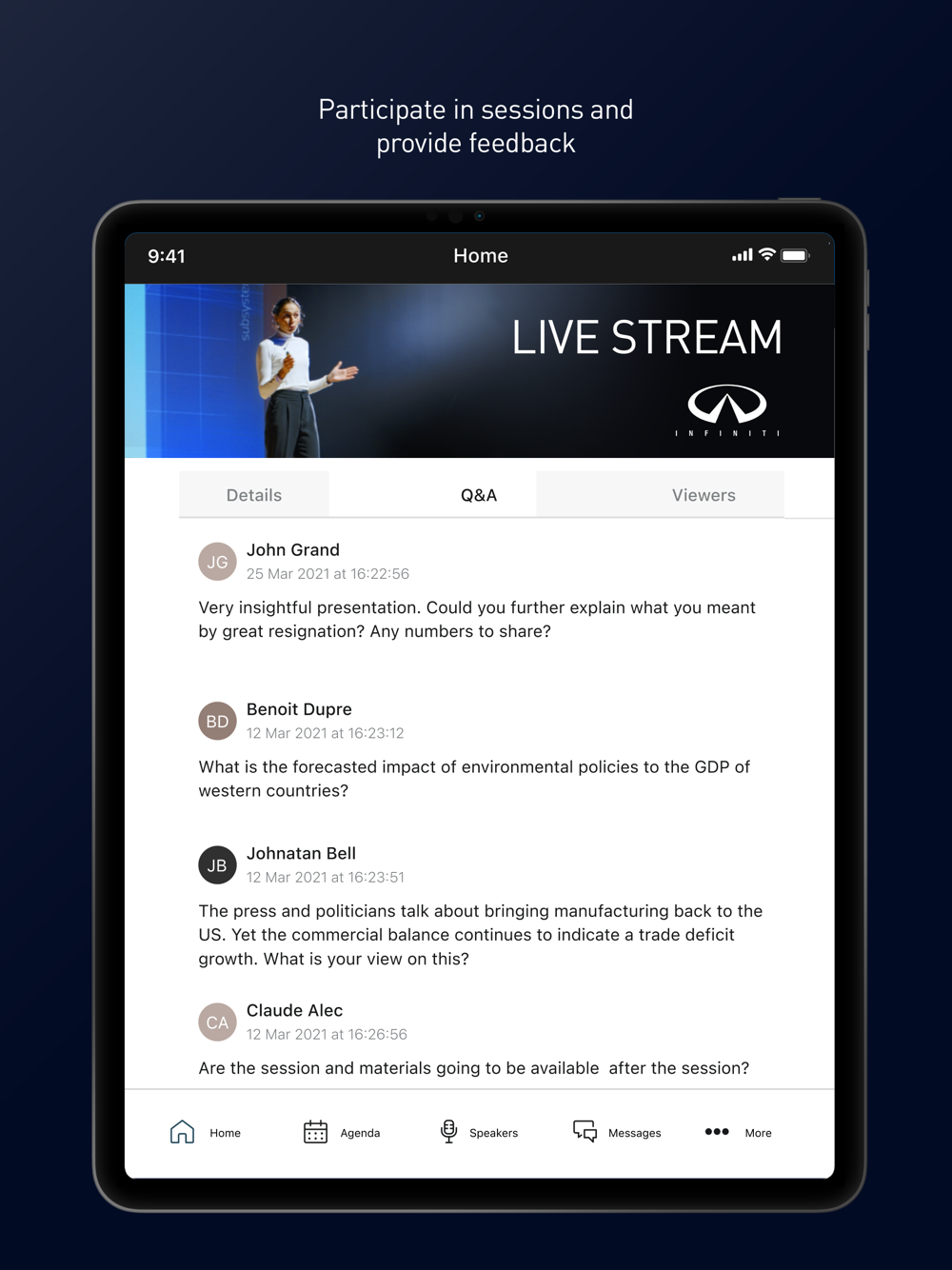 • Improvements made to ensure that all times for meetings follow the choice made in the “Timezone” event setting.• We have optimized the user experience for when changes are made to the app menu.• We have improved how feed videos are loaded when attendees have a poor internet connection.