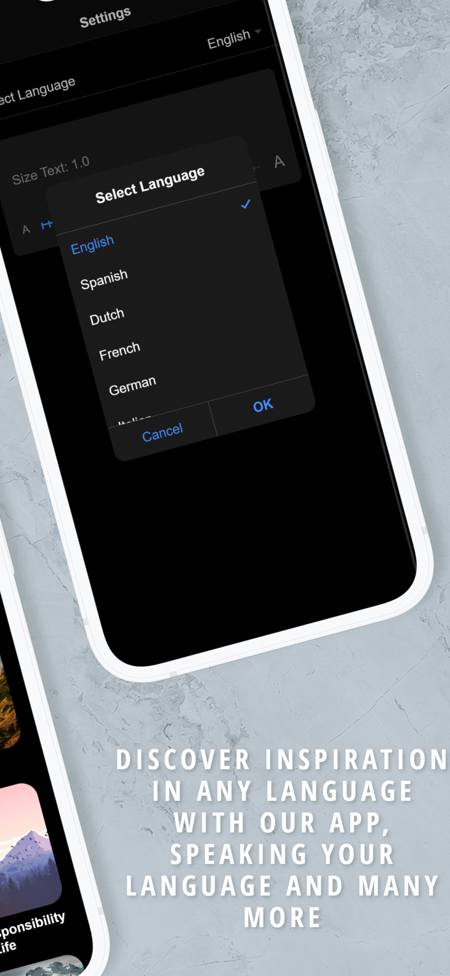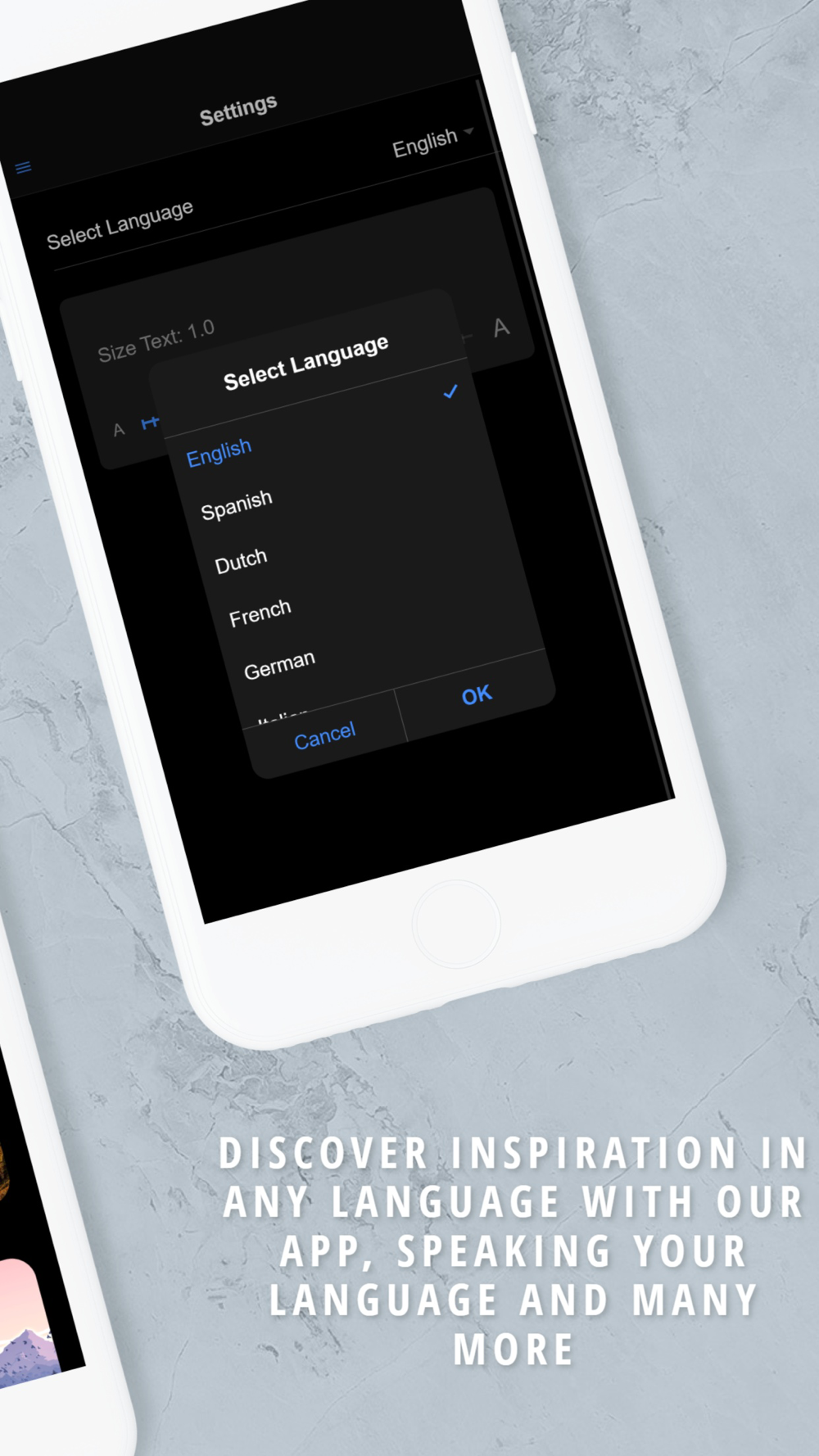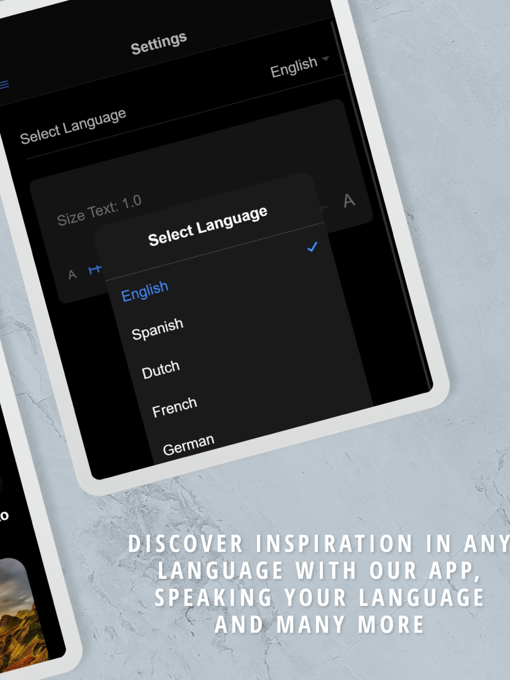And if you're looking for inspiration in a language other than English, we've got you covered. Our app offers multiple language options, ensuring that you can find inspiration in the language that speaks to you.