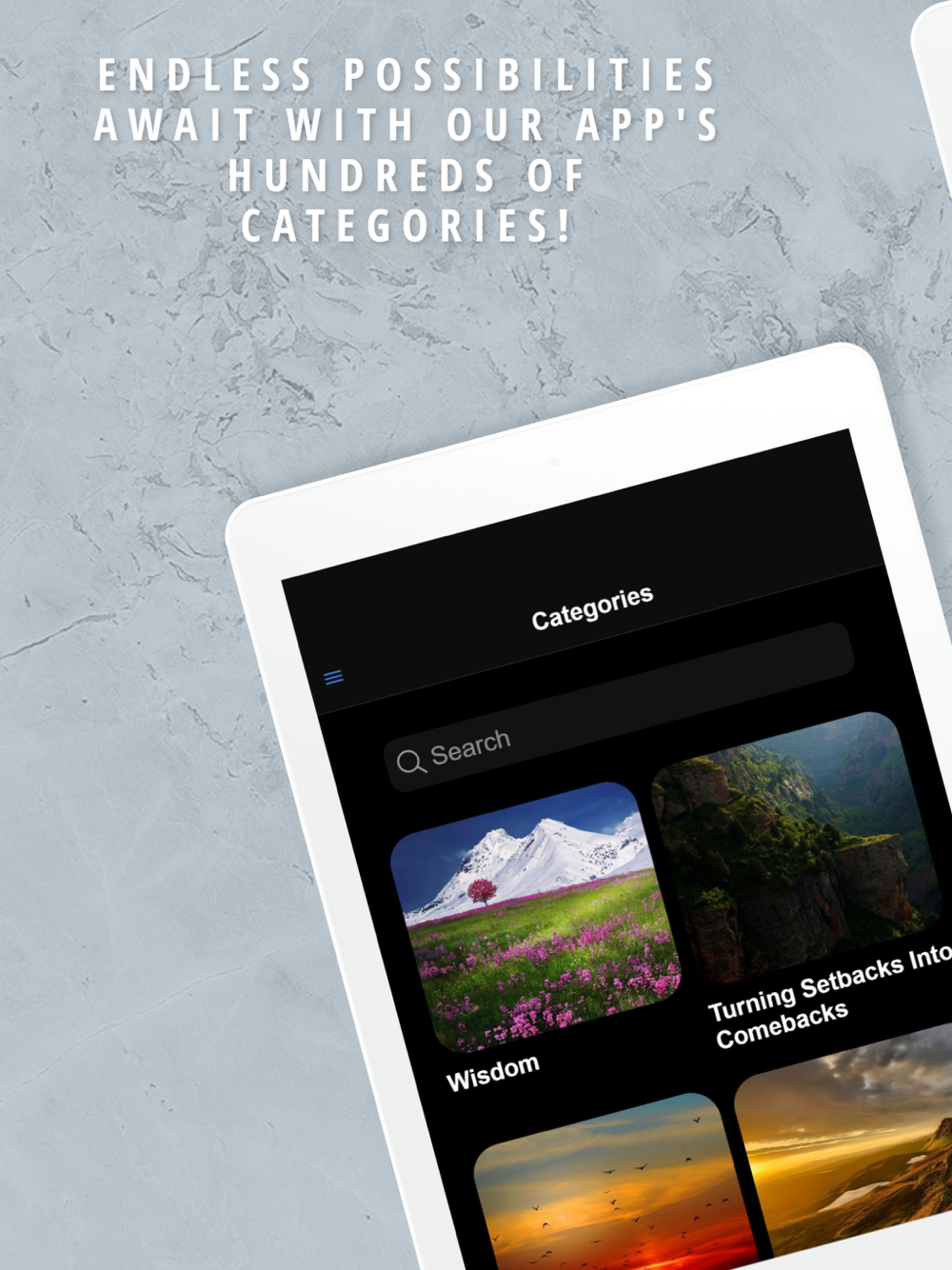Introducing our amazing app, designed to inspire and empower you with its vast collection of inspirational quotes. Our app offers daily doses of motivation and inspiration, with hundreds of categories to choose from, ensuring you'll always find the perfect quote to fit your mood and mindset.