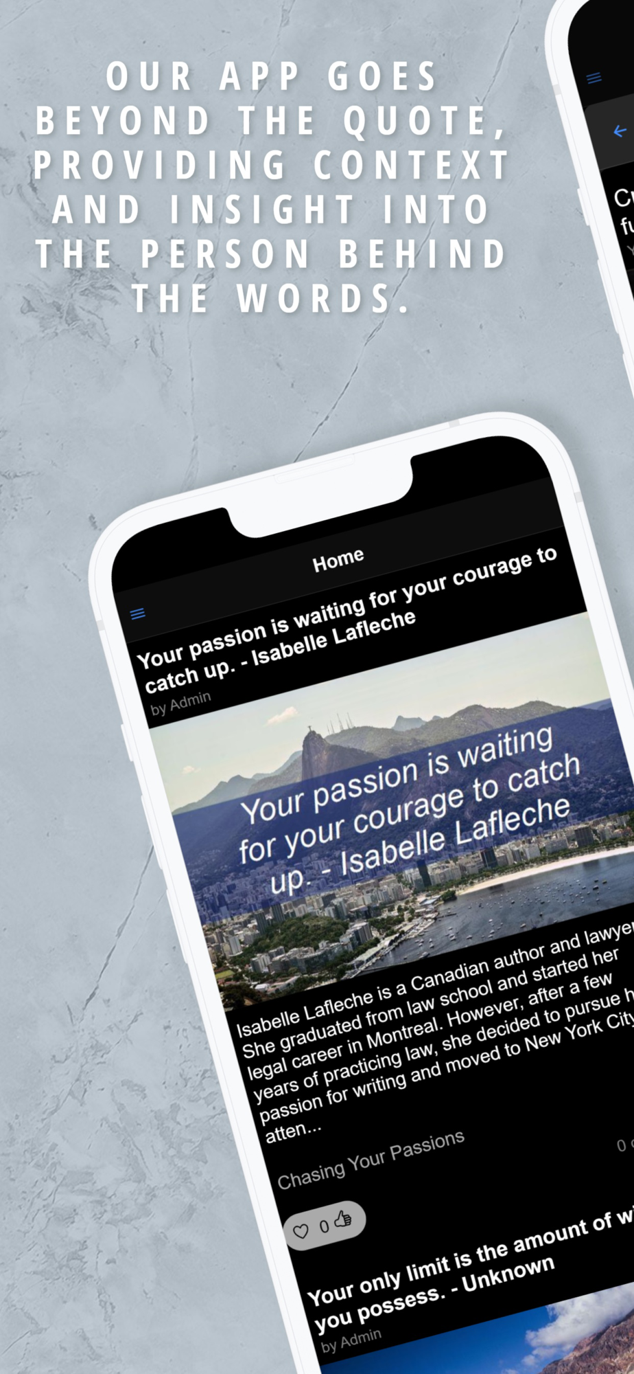 Our app is much more than just a simple quote repository. We provide a transformative experience that goes beyond the words themselves. With our app, you can gain deeper insights into the people behind the quotes, allowing you to better understand the context and apply it to your own life.