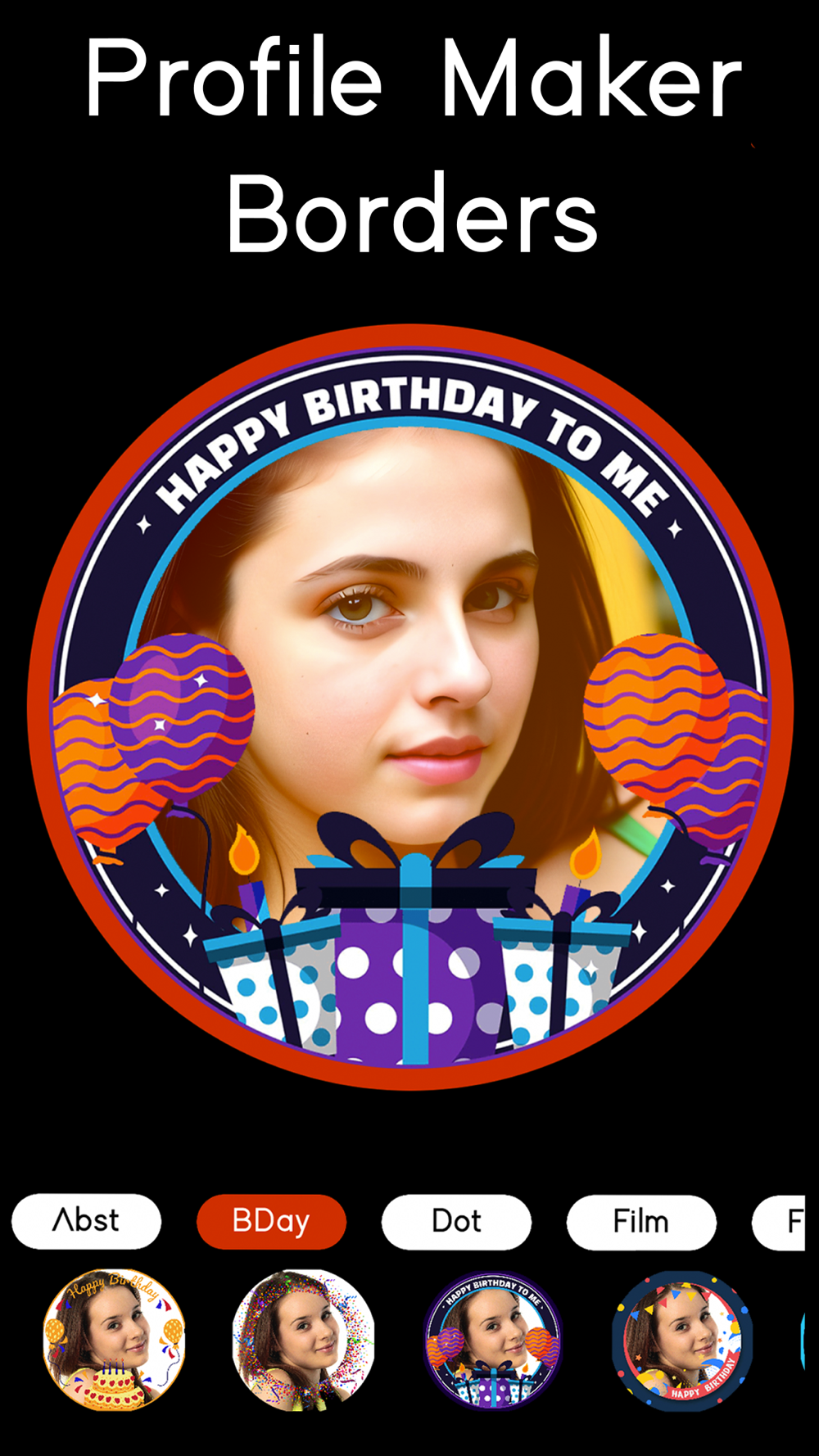 ProfilePic app includes wide category of profile picture borders like birthday, film, floral, love, neon and much more.