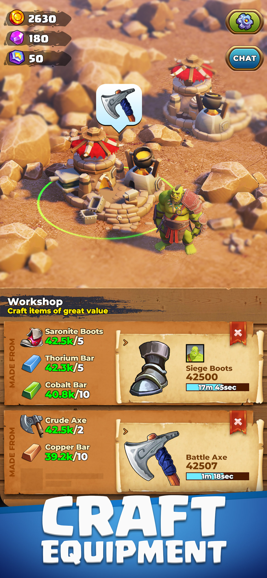 Lead your team of orcs to prosperity in this epic mining simulation game. Venture into unexplored lands, dig into unknown depths and mine for legendary ores. Smelt your ores into fine bars and use them to create powerful weapons, armor and artifacts.
