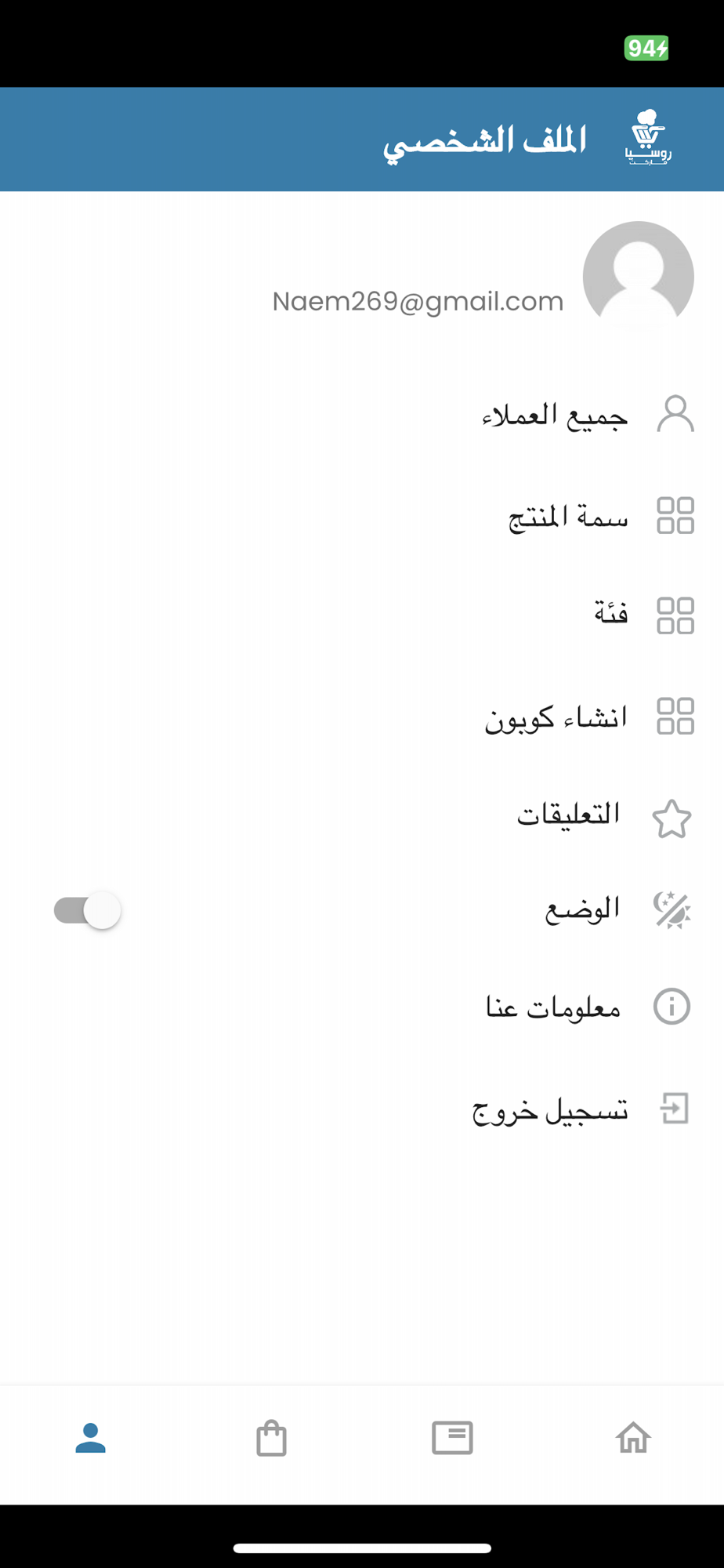 يمكنك من خلال تطبيق الادمن ادارة متجرك في روسيا ماركت مثل ادارة الطلبات وإضافة منتجات او حذفها الخ..