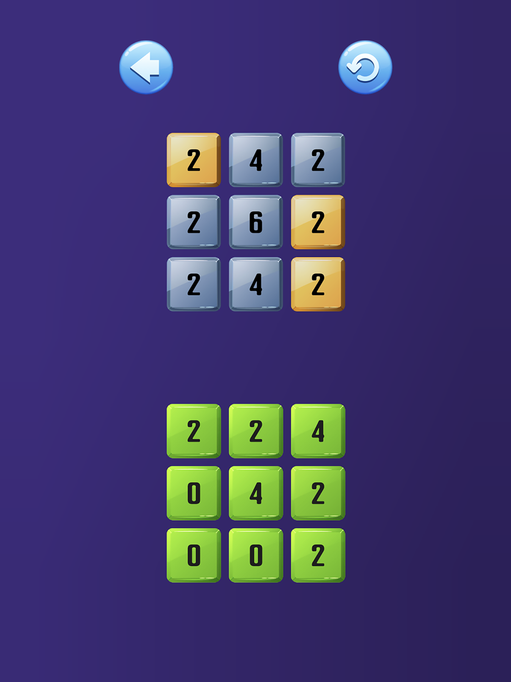 A unique puzzle game with different shape of matrix. Tap and match the number with matrix's above and solve the puzzle.