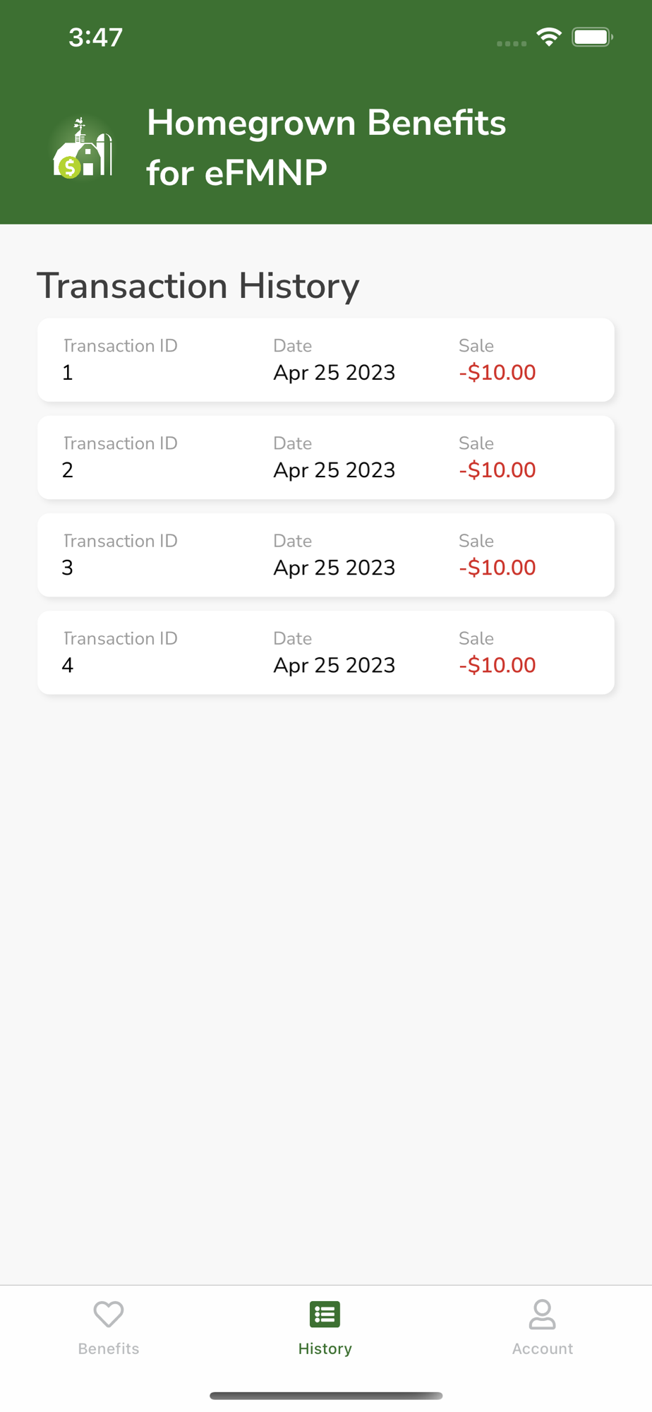 Our electronic benefit app brings online connectivity to your state's best produce, so it is much easier to bring it to market, or to your table. Use your virtual wallet to access your State administered benefits to purchase fresh products from your local Farmer’s Market or use your Homegrown Benefits application to redeem benefits while selling your fresh produce and products. Either way, your ability to transact while using Homegrown Benefits for eFMNP will become much more efficient. This app allows for real-time balance review, transaction review, and benefit administration. And just as important, it helps facilitate both your state's economic vitality and the health of its families.