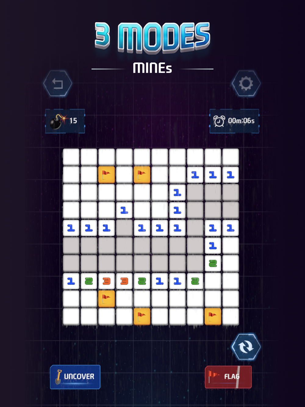 Addictive Minesweeper Gameplay: Uncover hidden mines and strategize your moves to clear the board.