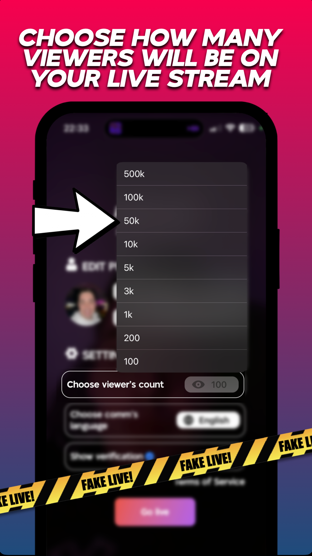 In our app, you can choose the number of viewers from 100 to 500,000 - just don't go overboard so that it looks believable.