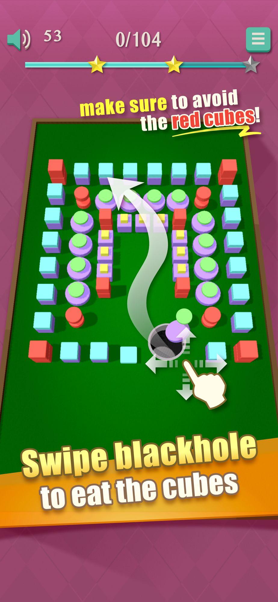 Eliminate all the blocks and make sure to avoid the red cubes to pass the level.