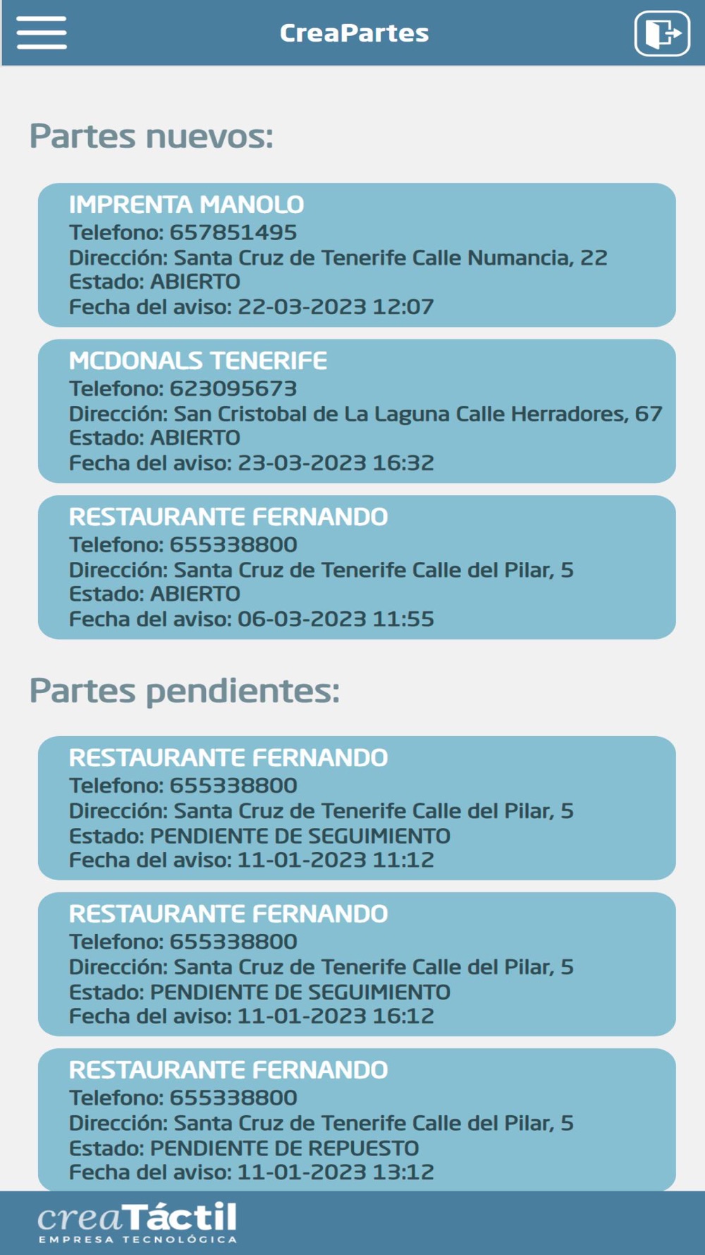CreaPartes es una aplicación de seguimiento y gestión de partes de mantenimiento y reparación, diseñada para ayudar a empresas y profesionales a administrar de manera eficiente las actividades de mantenimiento y reparación de sus equipos, maquinaria o instalaciones. La app ofrece una interfaz intuitiva y fácil de usar, con características y funcionalidades específicas para el seguimiento y control de partes de mantenimiento y reparación.