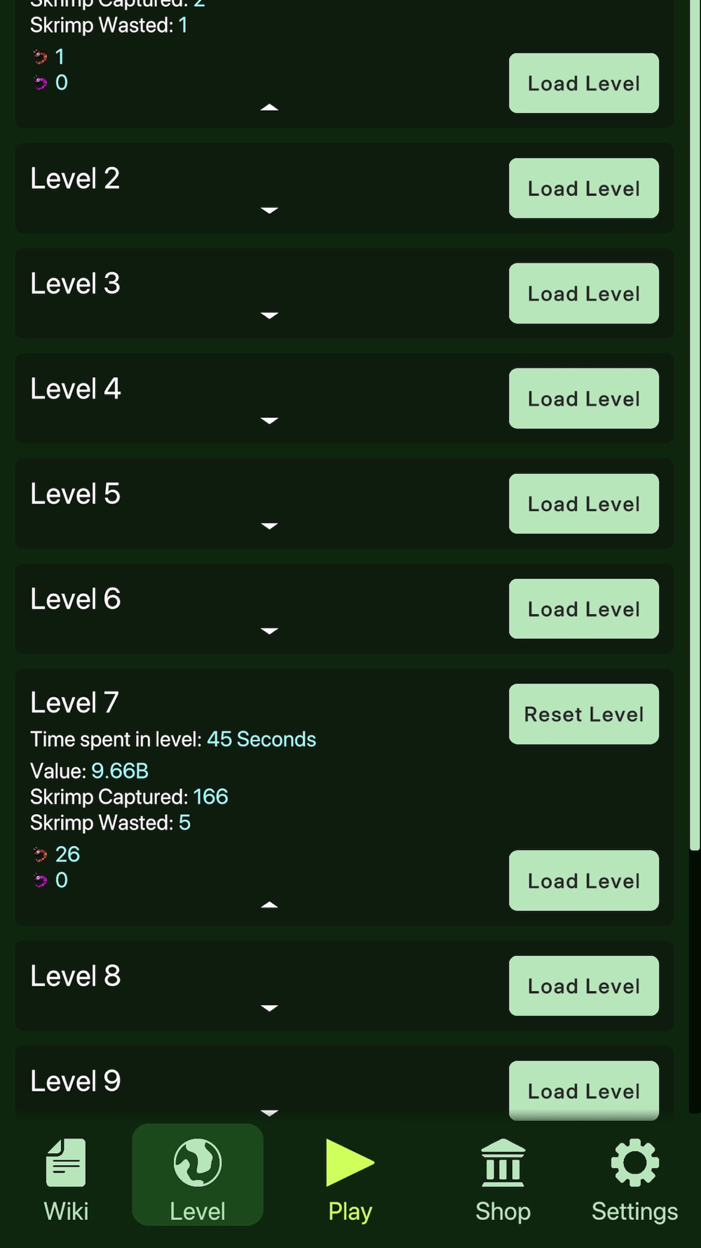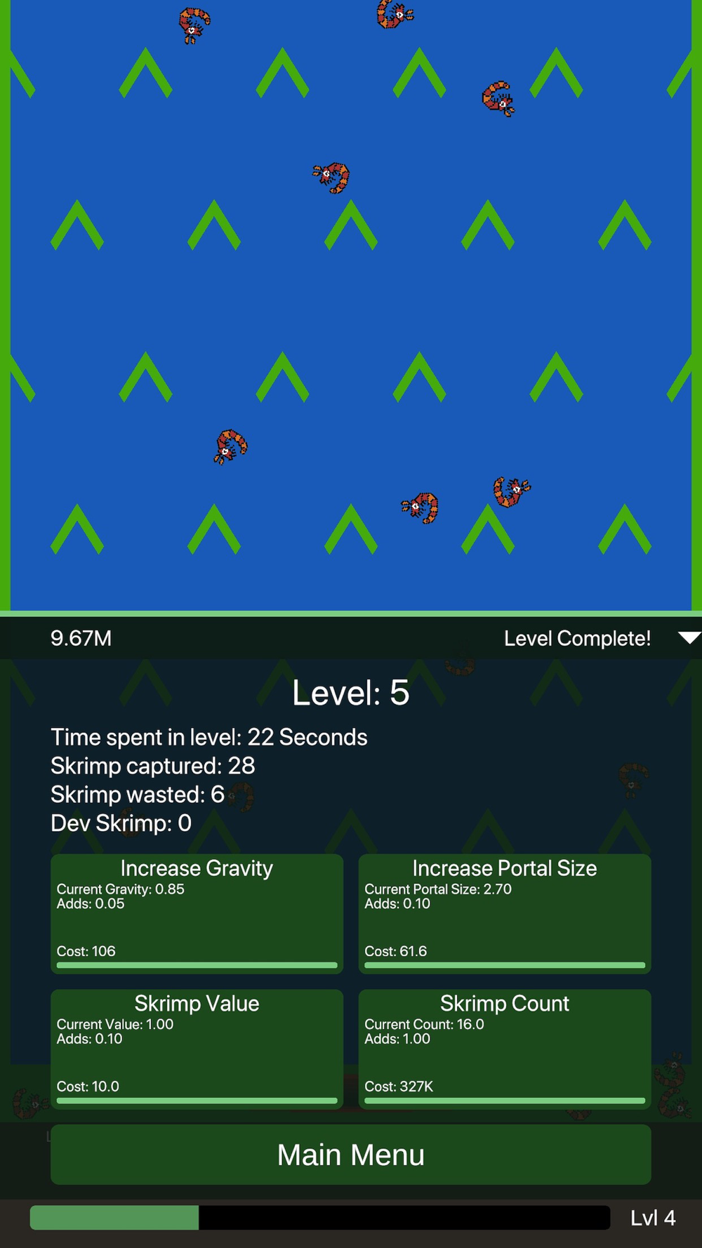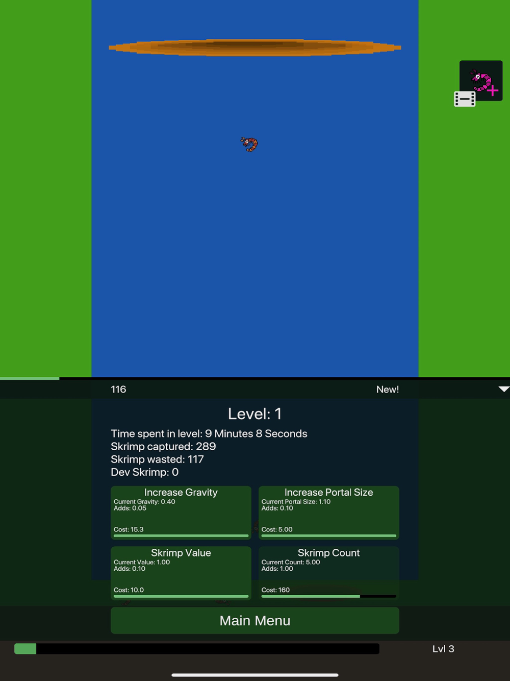 - New slider for skrimp count.- Lowered xp requirements for levels.- New stage.- Changed the order of some stages to introduce certain mechanics earlier.