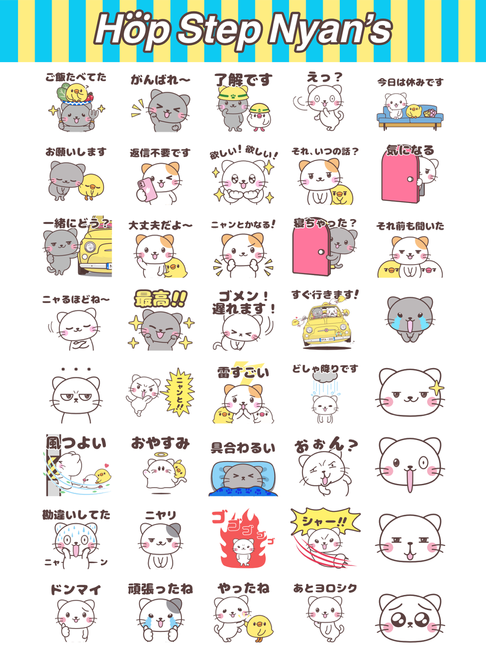 ニャンズ達もさらに可愛くなった第3弾も日常で使いやすい言葉が中心の全40種類。