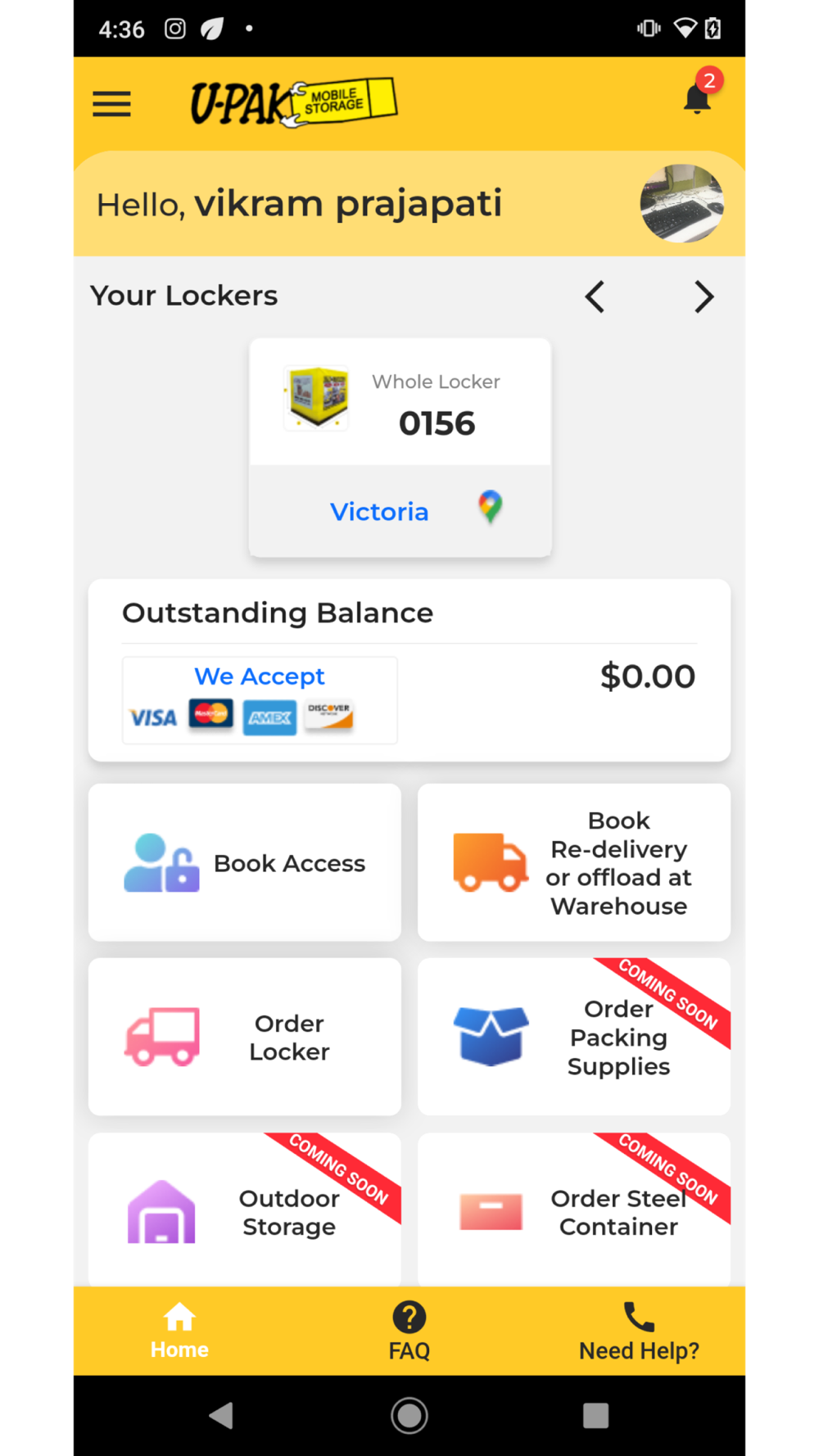 UPAK Storage provides mobile storage lockers, vehicle storage, On & Off the Rock, Loading & Packing Supplies Services. UPAK mobile application is designed for it's customers to order storage locker, book a locker access, book locker delivery, account statement and instructions to pay outstanding balance.