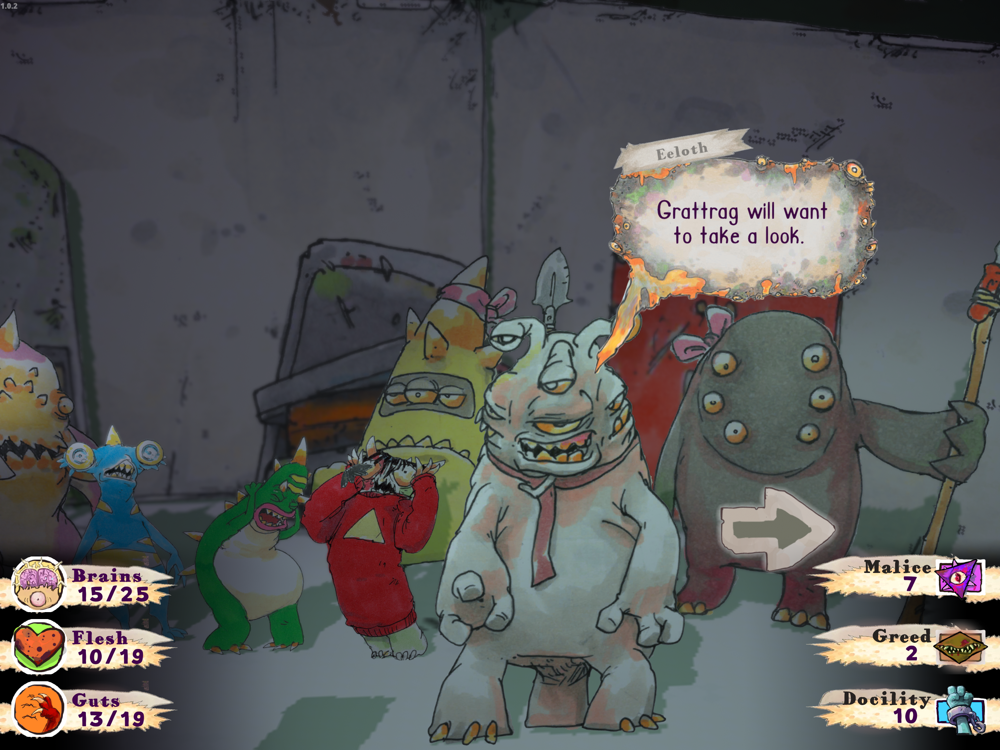 You're born with FLESH, BRAIN, and GUTS. Grow arms, legs, and teeth. If you survive, you'll get to scavenge for the scraps that larger, meaner Monsters leave behind. Yippee!