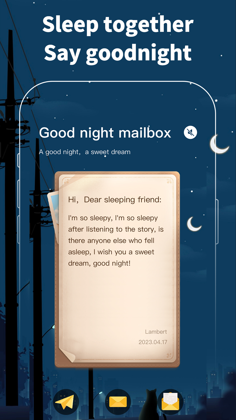 You are not the only one to face issues at night. It is not uncommon to find it hard to fall asleep or to wake up various times during the night.When you can't sleep,You can even open the good night greeting letter from other corners of the world at any time, to warm you and accompany you to sleep.