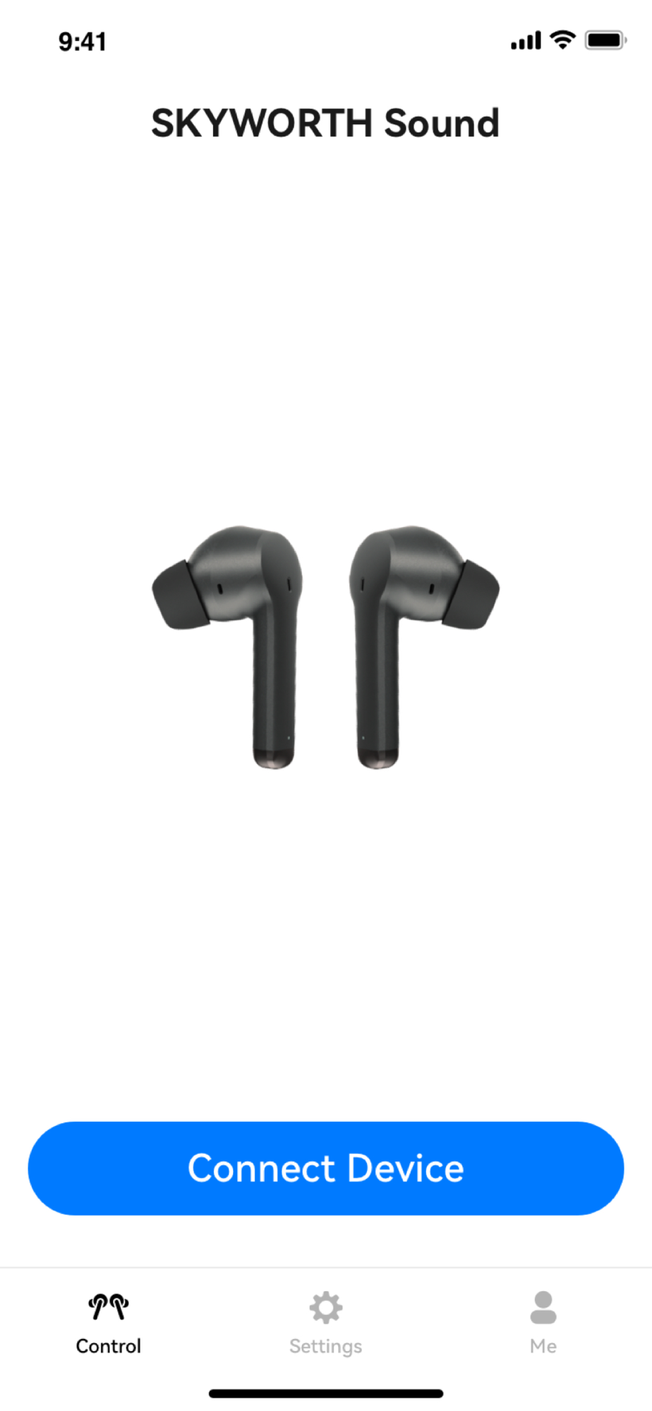 SkyworthSound APP is an app that supports the use of in-ear hearing aids. It can be connected to the hearing aids via Bluetooth, and enables related settings such as volume adjustment, frequency band gain adjustment, and intelligent noise reduction
