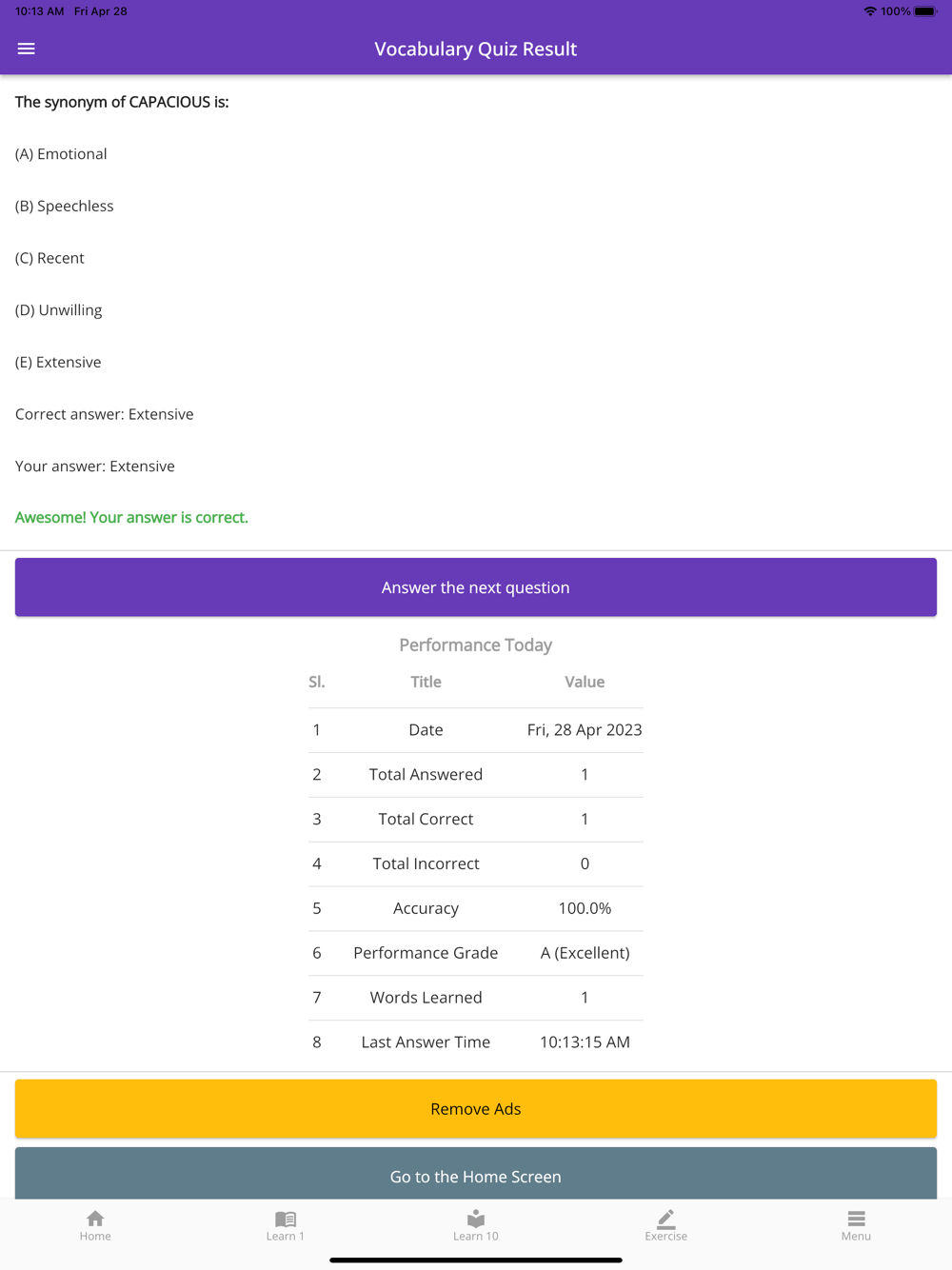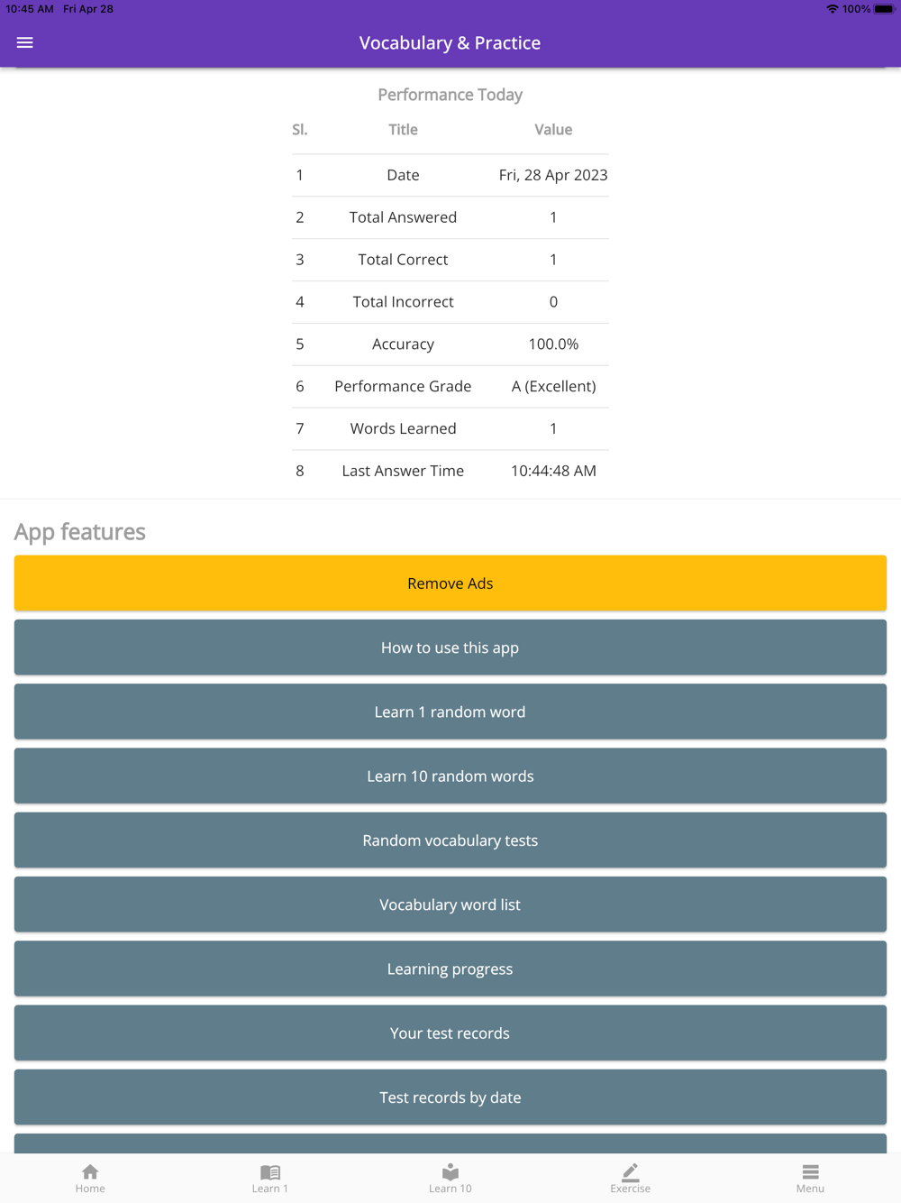 You can learn 1,000+ words and answer 10,000+ exercise questions using this app.