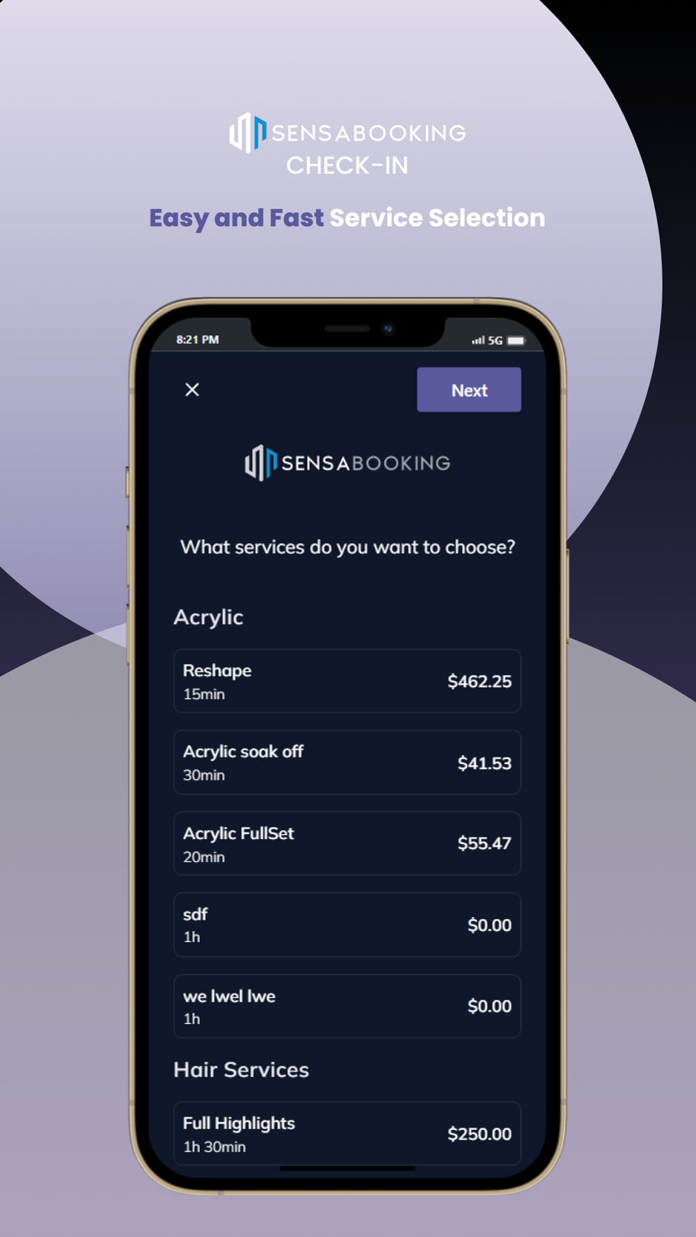 The booking check-in app for a beauty salon allows users to reserve a beauty treatment appointment and check-in for their appointment using their mobile device. Users can select the type of beauty treatment they want, choose the service provider, select the date and time of the appointment, and complete the booking process through the app.